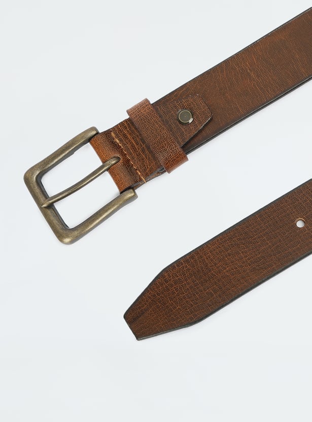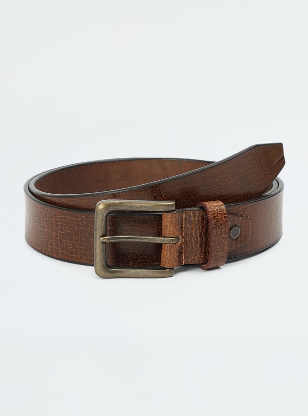 Elevate your casual collection with this elegant belt, crafted to fit every taste. Featuring a textured surface, punch holes, and tang buckle closure, it adds a touch of sophistication to any outfit.