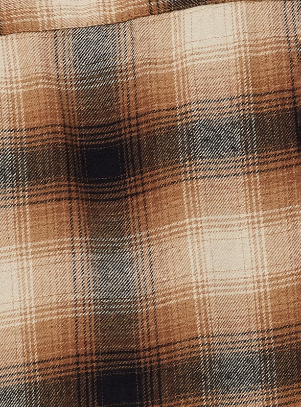Keep it classic with this checked regular fit shirt, featuring a spread collar, button placket, full sleeves with button cuffs, and a patch pocket. A timeless staple for casual or smart-casual occasions.