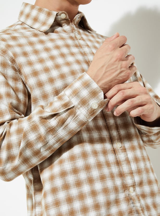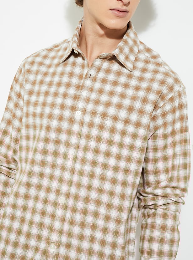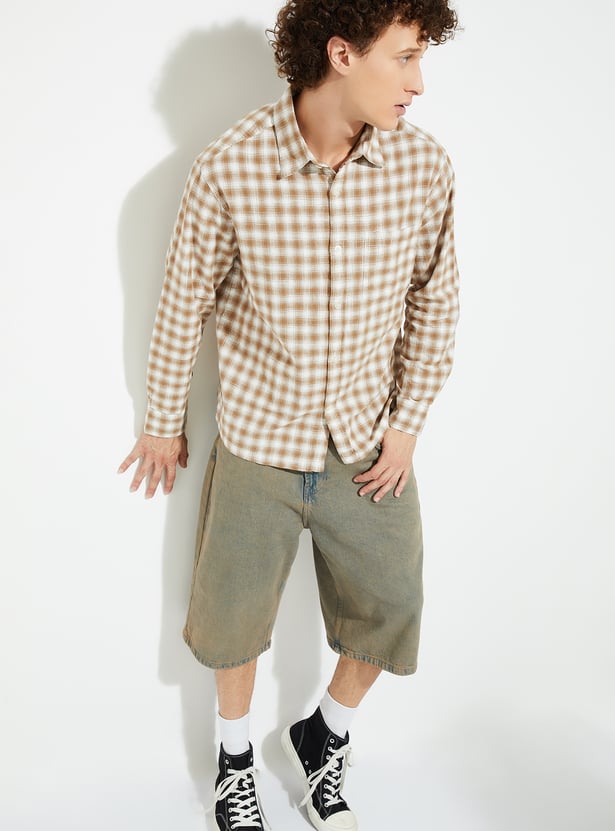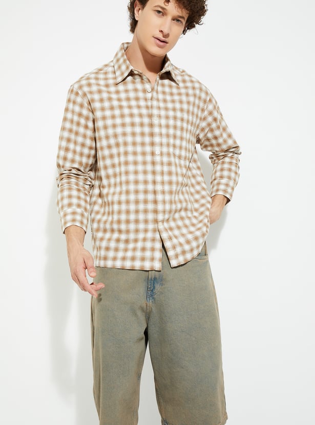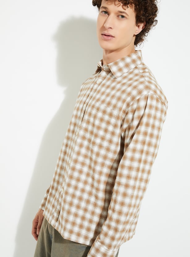 Add a timeless touch to your wardrobe with this checked relaxed fit shirt, featuring a spread collar and full button closure. Designed with full sleeves, button cuffs, and a patch pocket, it offers both style and comfort for everyday wear.