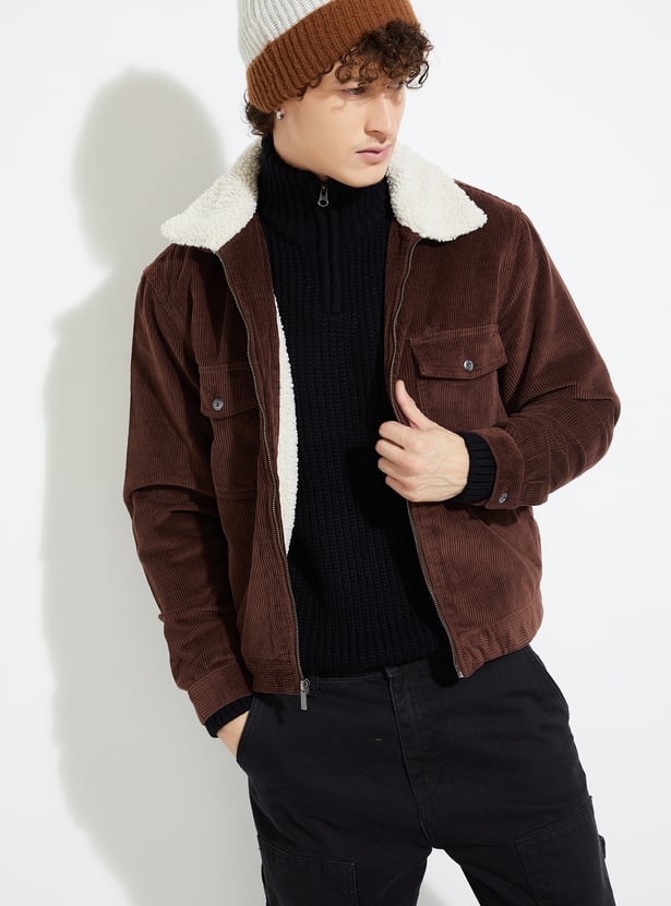 URB_N Men Corduroy Jacket with Sherpa Collar