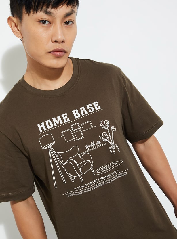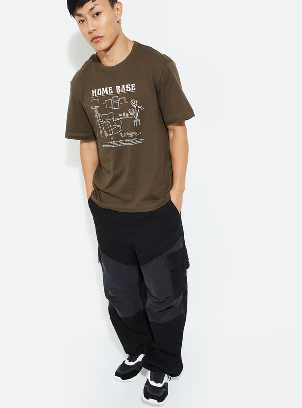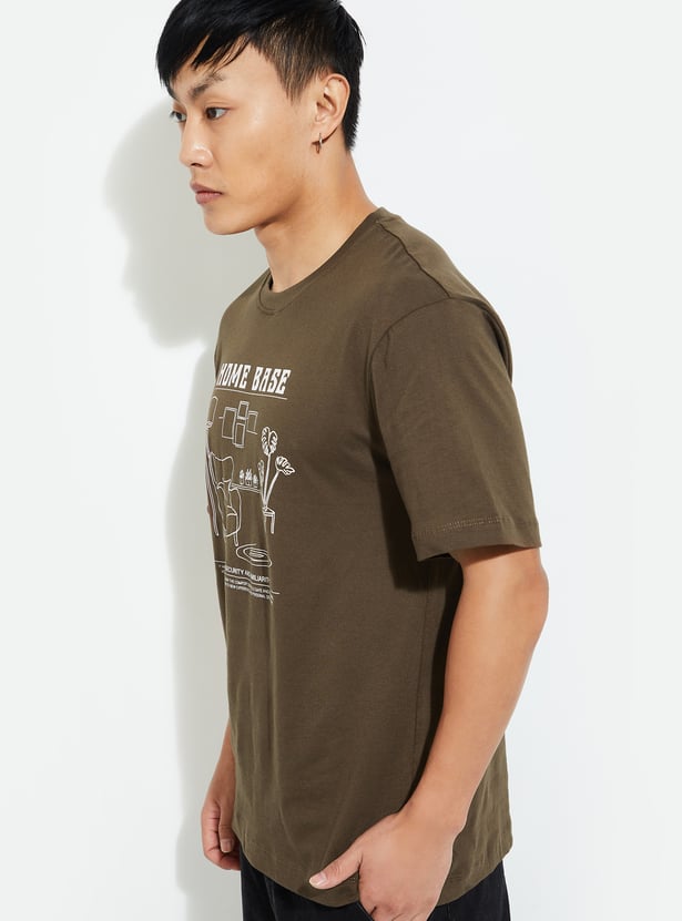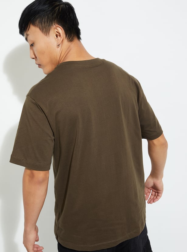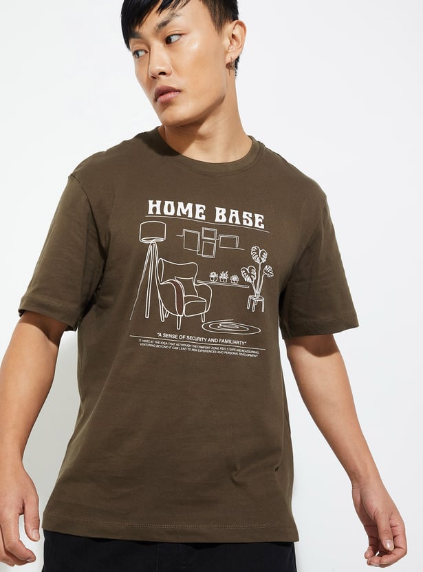 Elevate your street style with this trendy T-shirt, adding urban flair to your look. Featuring a striking graphic print, crew neck, and half sleeves, it ensures roomy comfort for all-day wear.