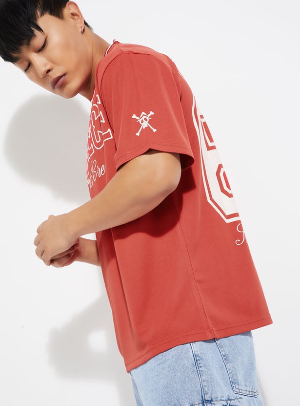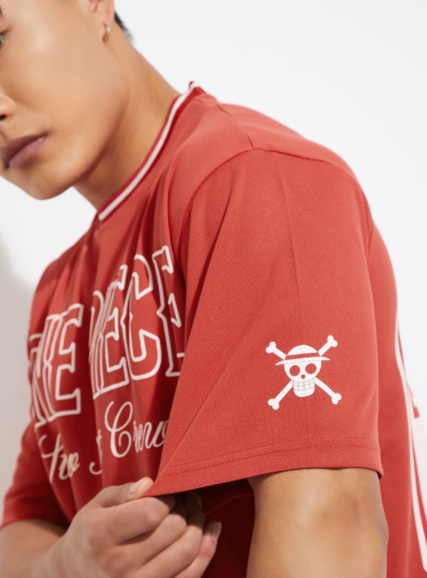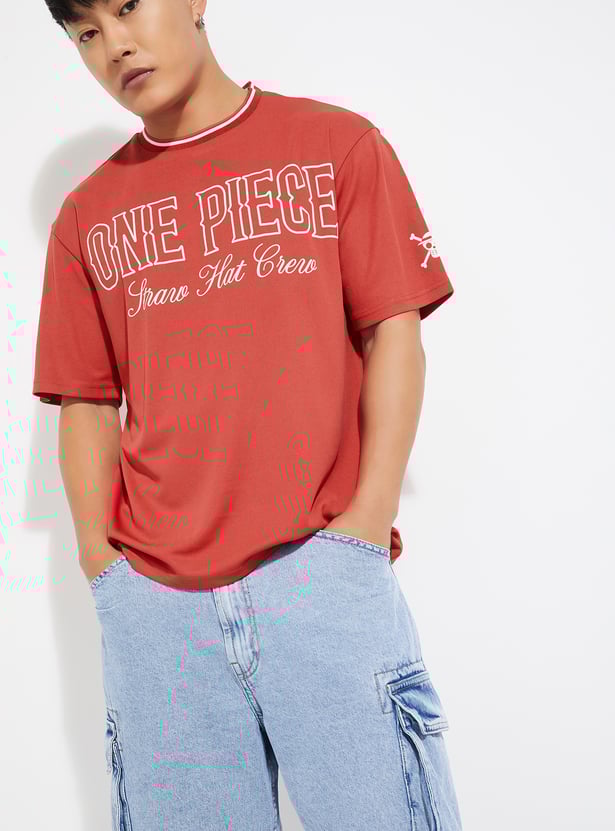 Stay comfortable and on-trend with this One Piece printed oversized T-shirt, featuring a classic crew neck, full sleeves, and a ribbed hem for a relaxed fit.