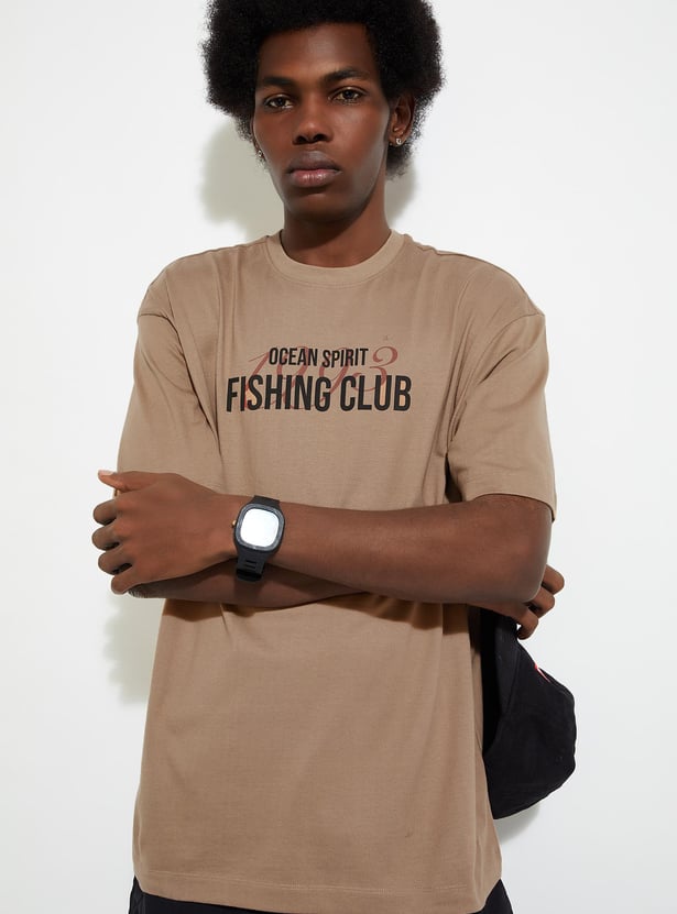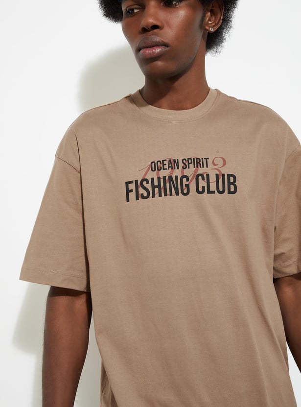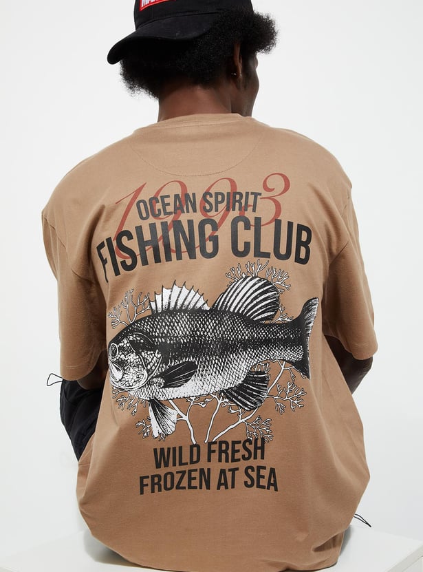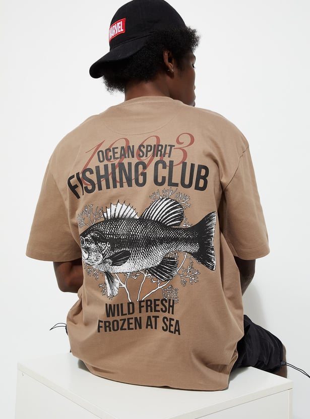 Look trendy in this t-shirt that has a graphic print at the back and a placement print on the front. It features a crew neck, short sleeves, and an oversized profile.