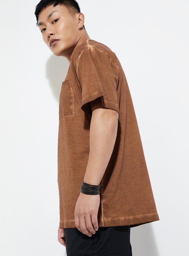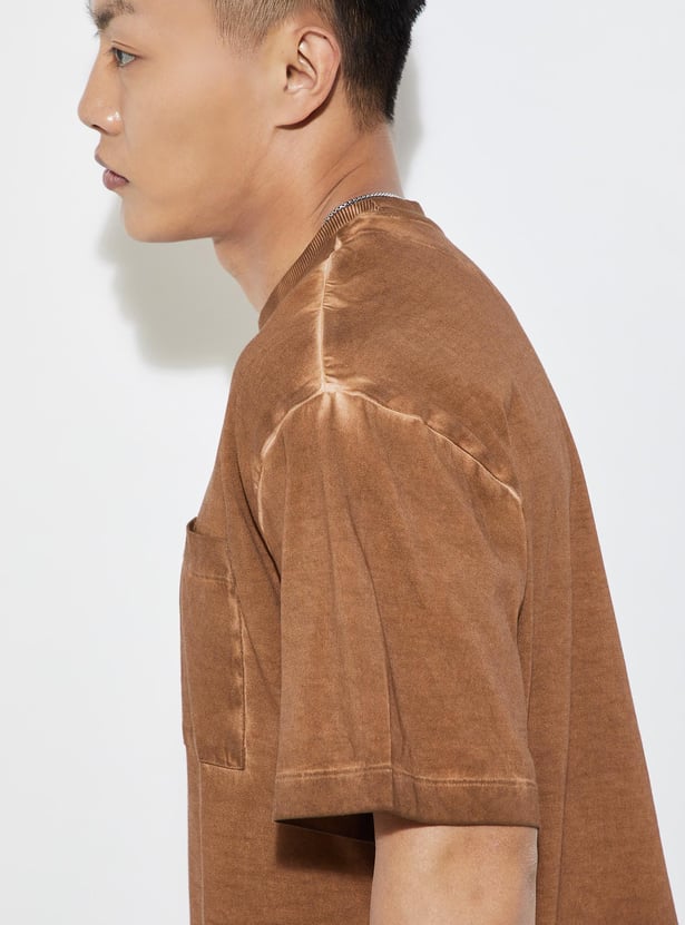 Level up your street style effortlessly with this oversized pigment-dyed t-shirt. Rocking half sleeves, a patch pocket and a classic crew neck, it brings an urban edge to your everyday look, serving up trendy vibes with a laid-back attitude.