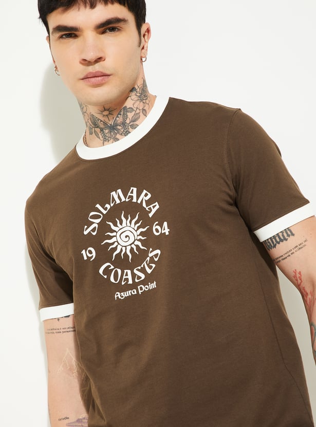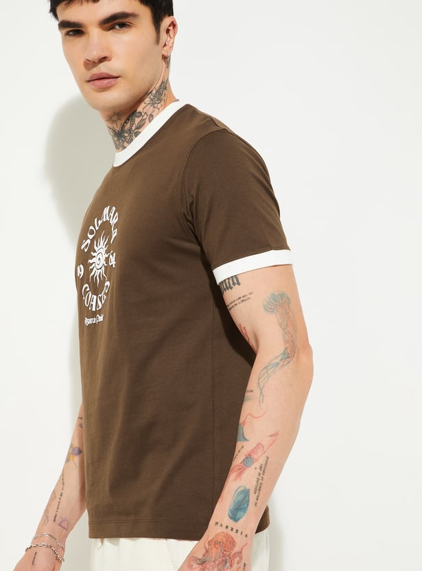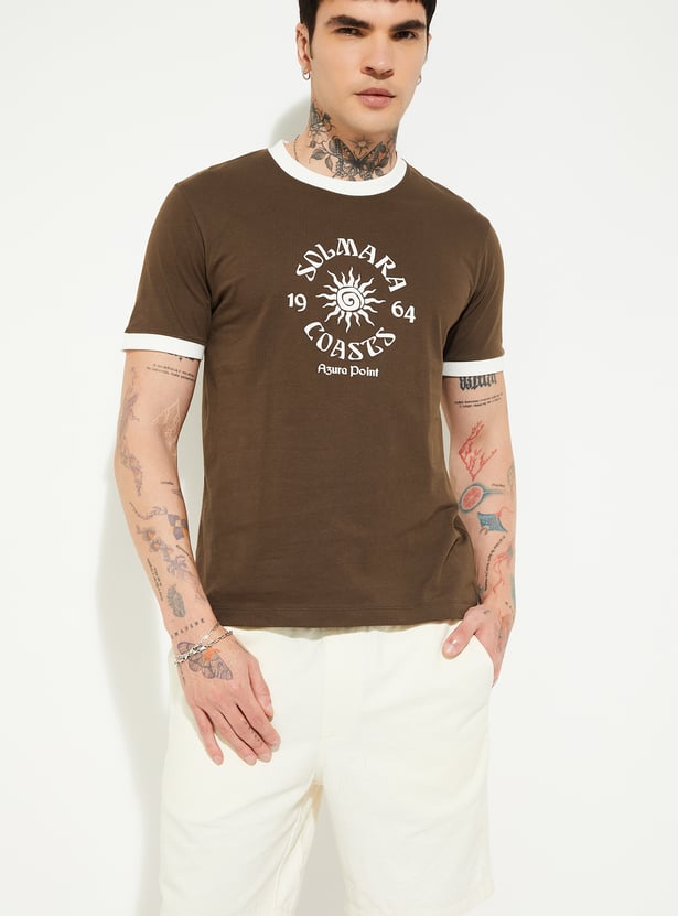 This printed T-shirt, featuring a classic crew neck and half sleeves, it delivers relaxed comfort with a bold print that adds personality to your look.