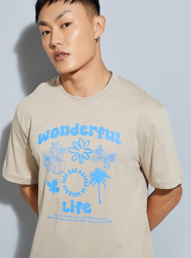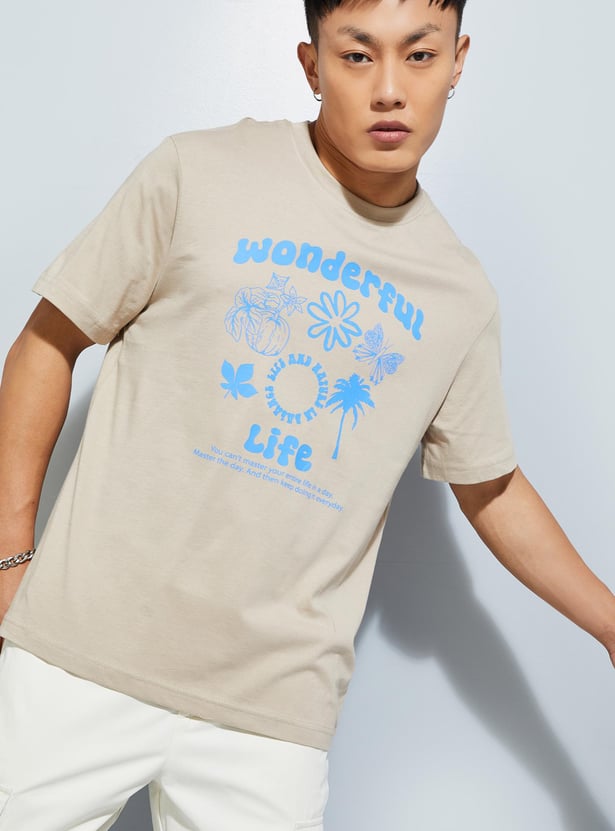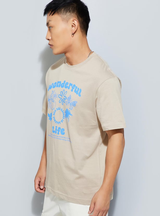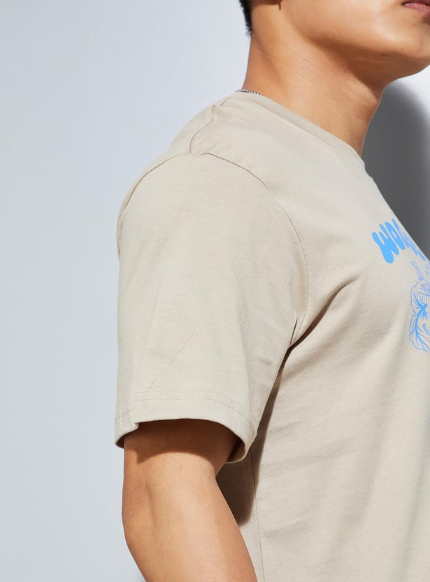 Level up your streetwear game with this graphic-printed T-shirt. Featuring a bold design on the chest, this tee boasts a classic crew neck and short sleeves for timeless urban style. Its regular fit profile ensures roomy comfort that's perfect for all your city adventures.