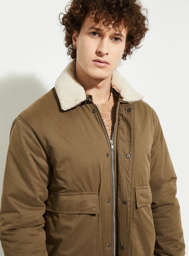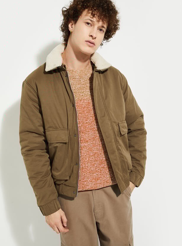 Upgrade your outerwear collection with this casual jacket featuring a cozy sherpa collar, full sleeves and zip closure! Perfect for cooler days, it combines warmth, comfort, and style in one easy-to-wear piece.