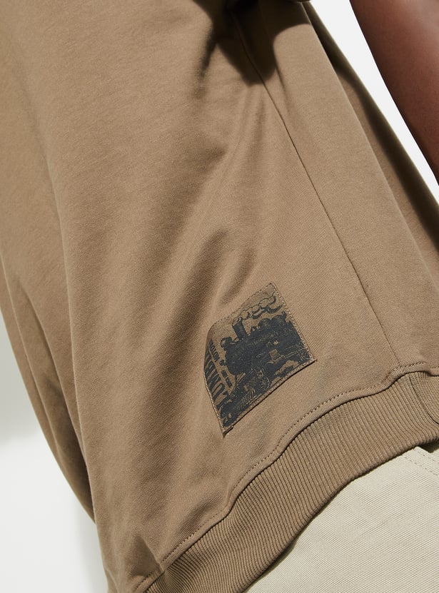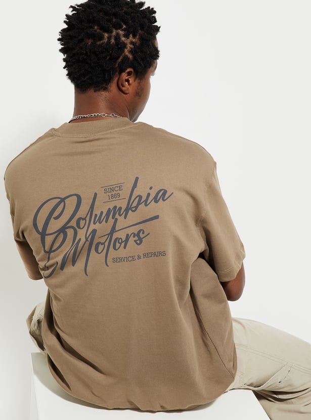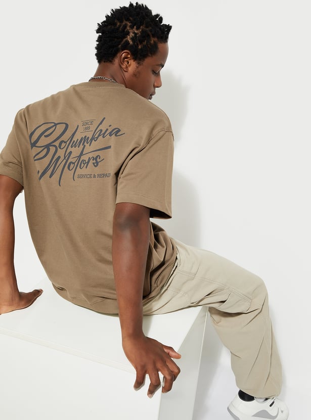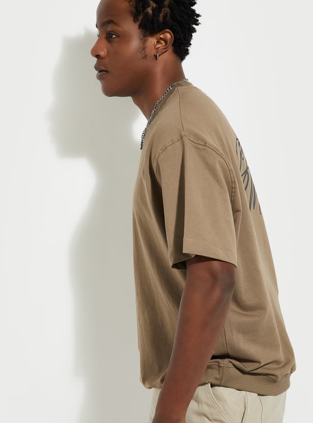 Level up your street style with this oversized T-shirt. Featuring a graphic print at the back, half sleeves, and a crew neck, it adds a trendy edge that effortlessly enhances your casual look.