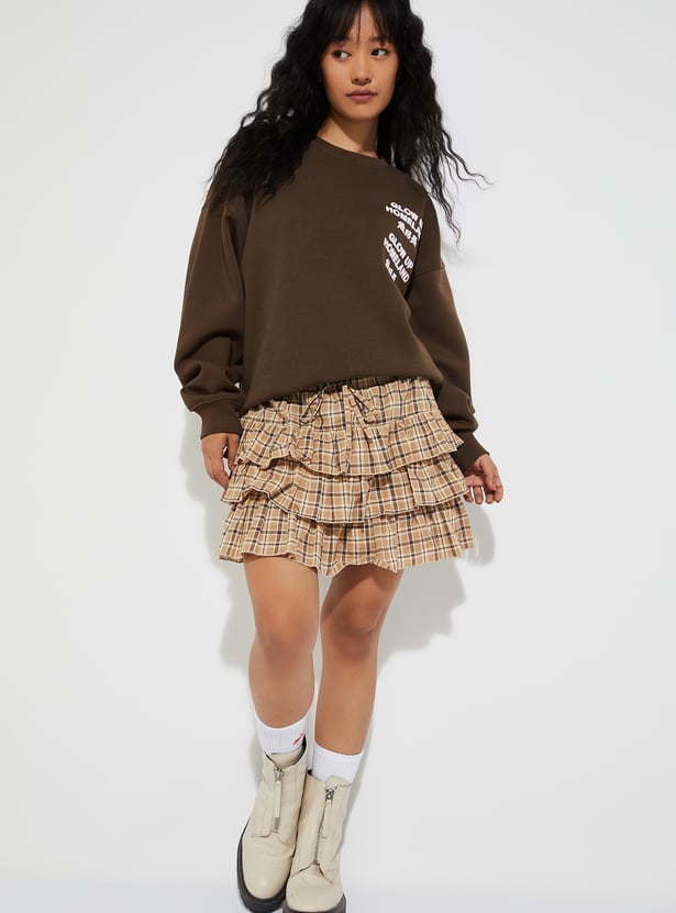 Effortlessly cool and ultra-comfy, this printed oversized sweatshirt is your go-to for laidback vibes. With a round neck, full sleeves, back print, and ribbed hem, it blends casual ease with street-style edge. Model Size :