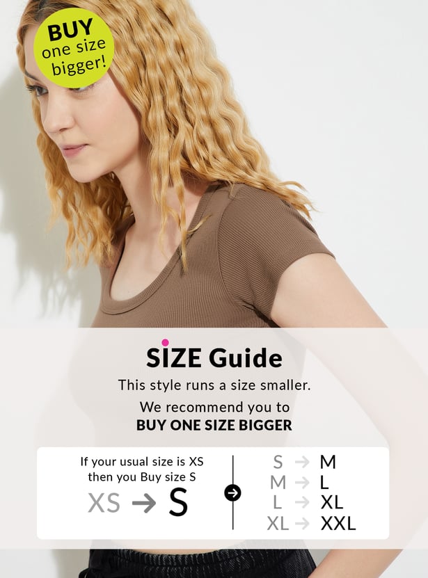 Keep it chic and casual with this ribbed crop top, featuring a flattering scoop neck and half sleeves for a sleek, fitted look. The ribbed texture adds a stylish edge to this everyday essential.
