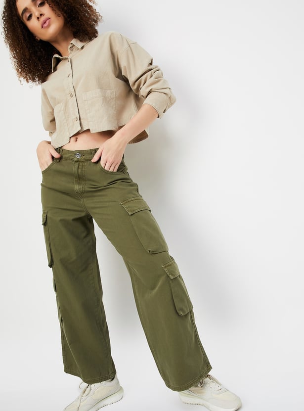 Women Boxy Fit Solid Crop Shirt