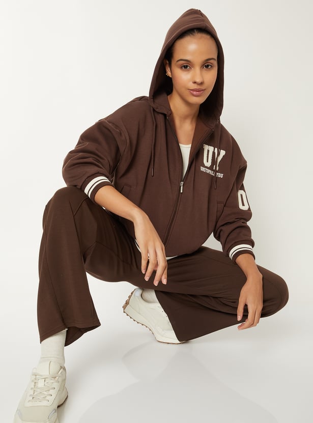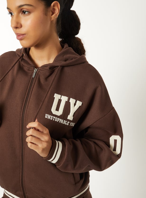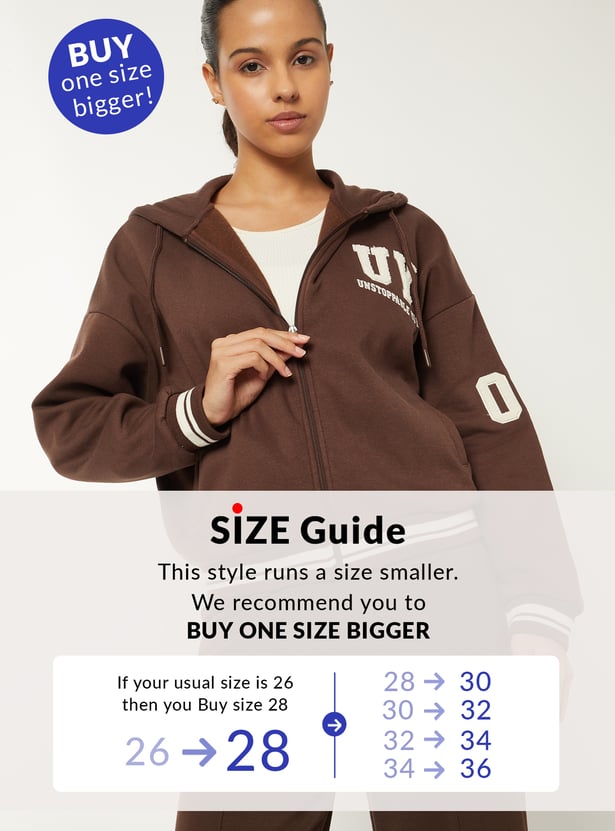 This boxy varsity jacket combines style and comfort with full sleeves, a hood, and front insert pockets. It’s perfect for layering over casual outfits. Model Size :