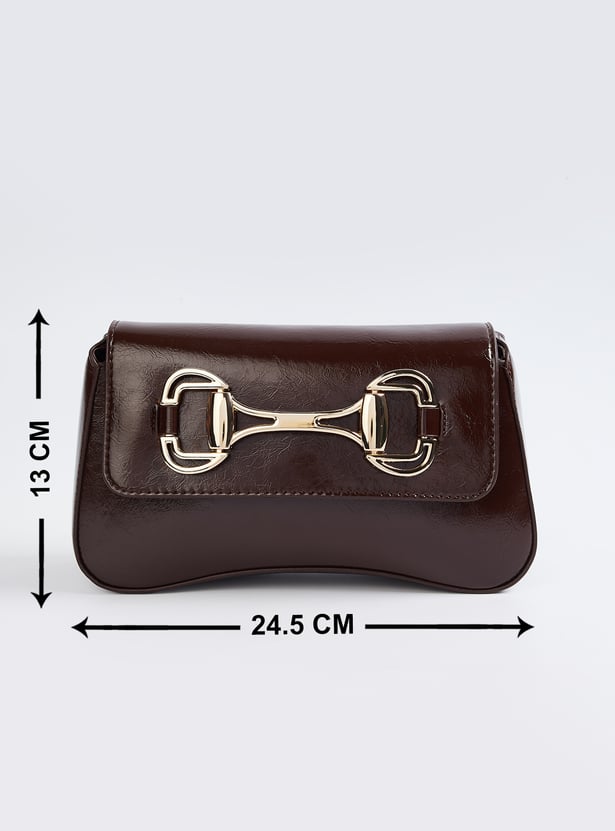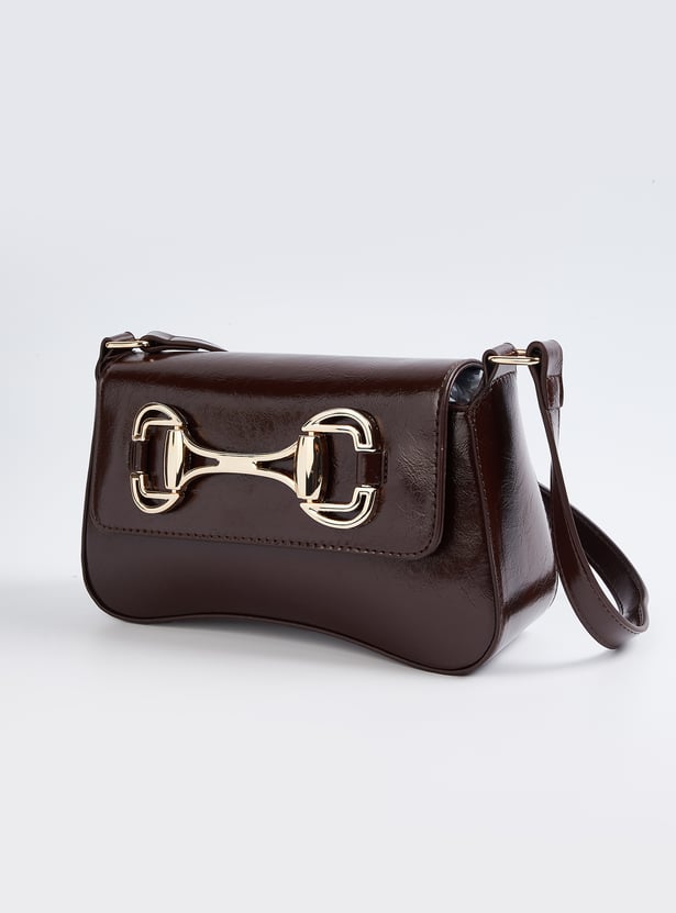 Step out in style with this buckles shoulder bag. Featuring a flap snap button closure and a sturdy shoulder strap, it combines functionality with a modern, versatile design.