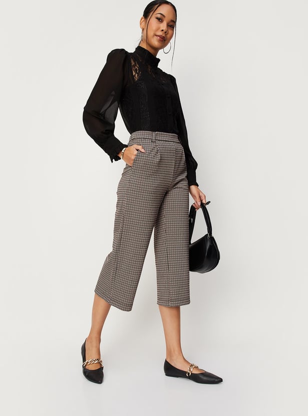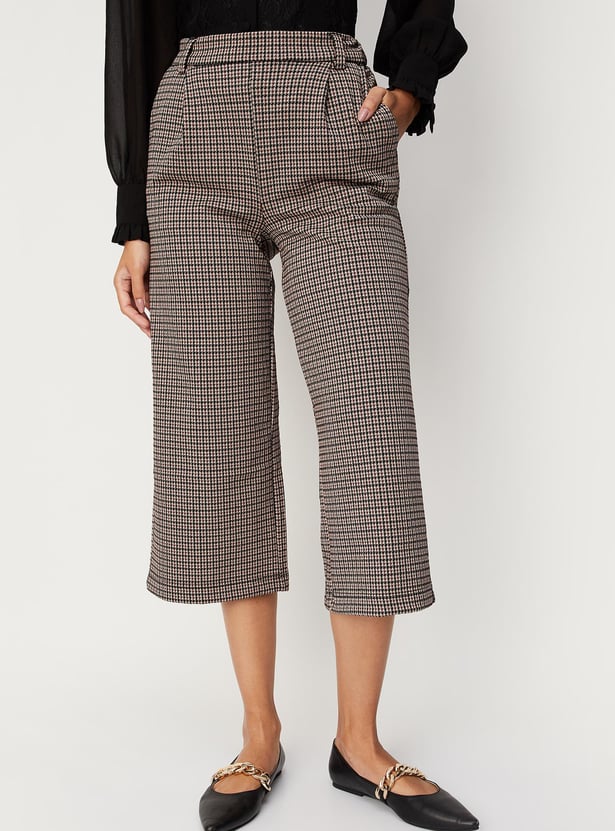 Women Checked Elasticated Culottes