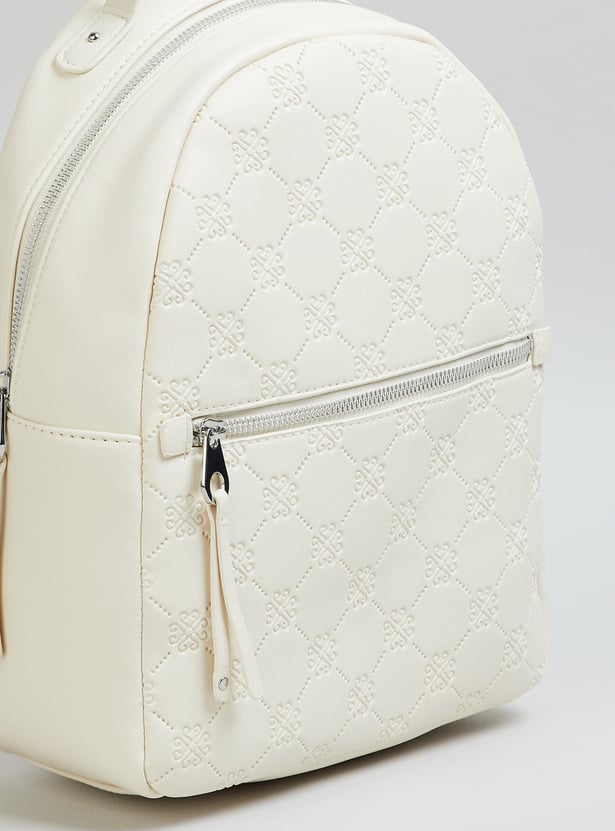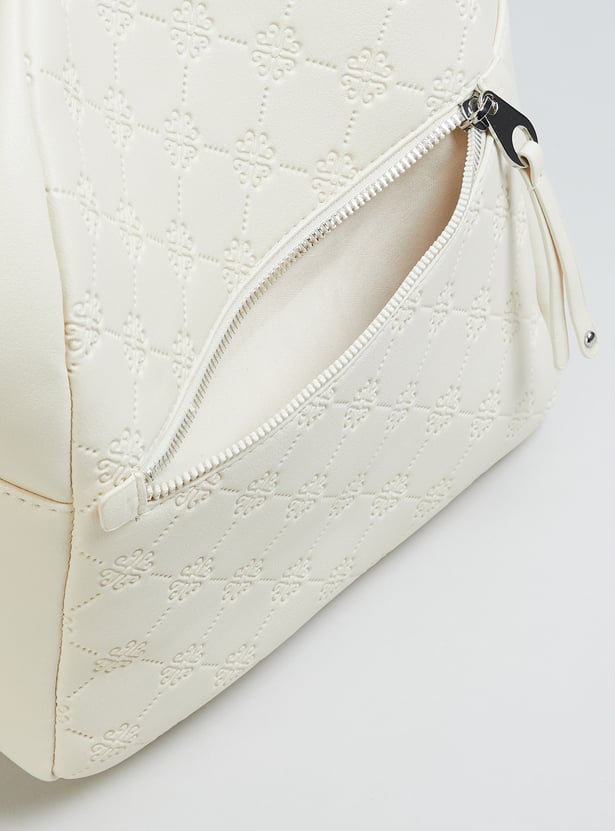 Dive into sophistication with this stylish backpack adorned with a debossed pattern. Boasting a roomy main compartment, front pocket, inner pocket, and comfortable straps, it seamlessly blends functionality with elegant design, offering an enchanting experience.