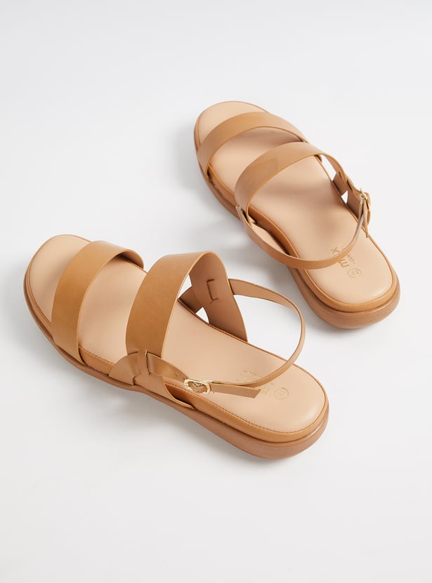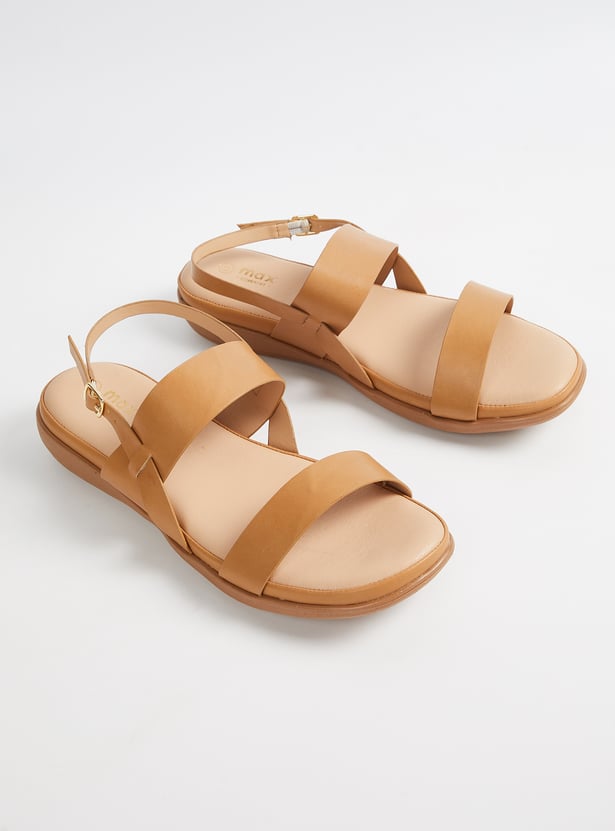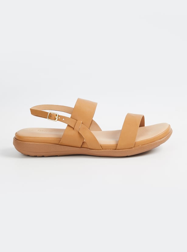 Step into sleek sophistication with these dual-strap flats. Designed with an open toe and a secure buckle closure featuring a backstrap, they balance comfort with modern style. The dual straps add structure and elegance, making them versatile for both casual and semi-formal looks.