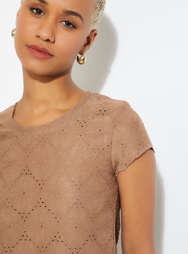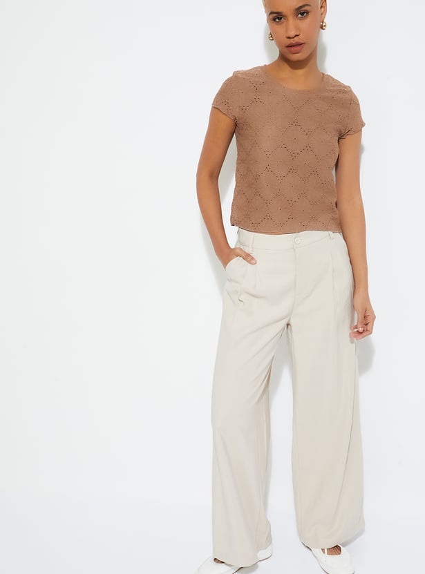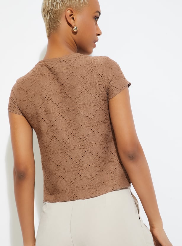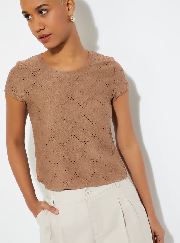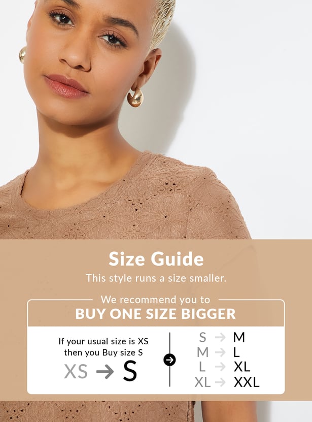 Elegant and versatile, this embroidered top features a classic round neckline and comfortable half sleeves. The delicate embroidery adds a touch of charm and sophistication, making it suitable for both casual wear and semi-formal occasions.