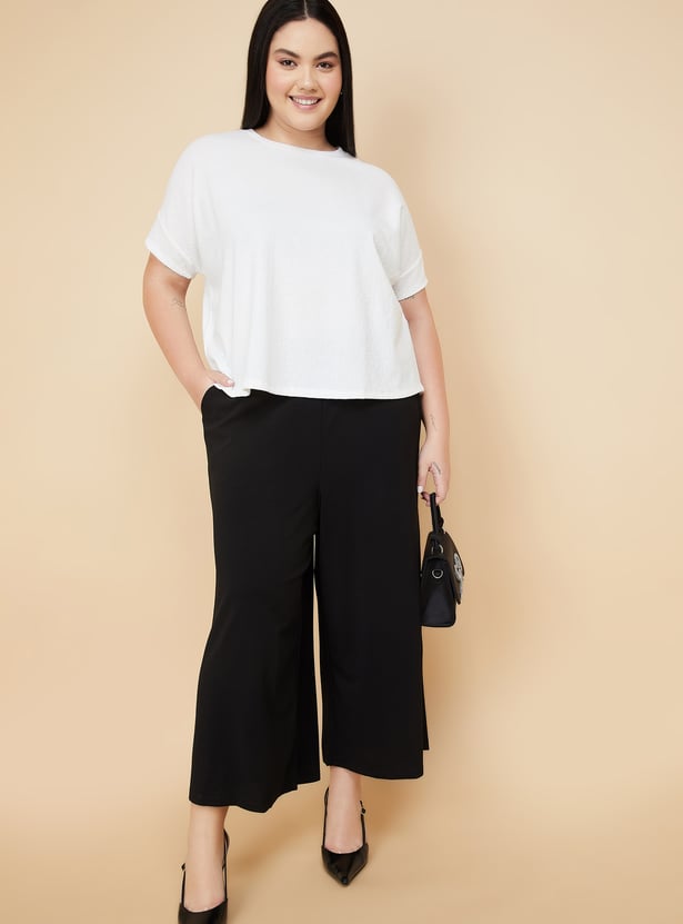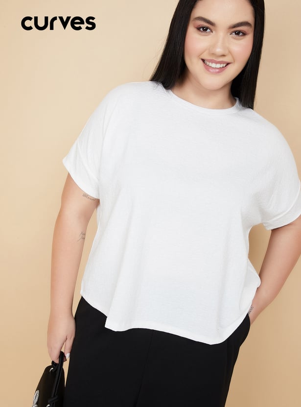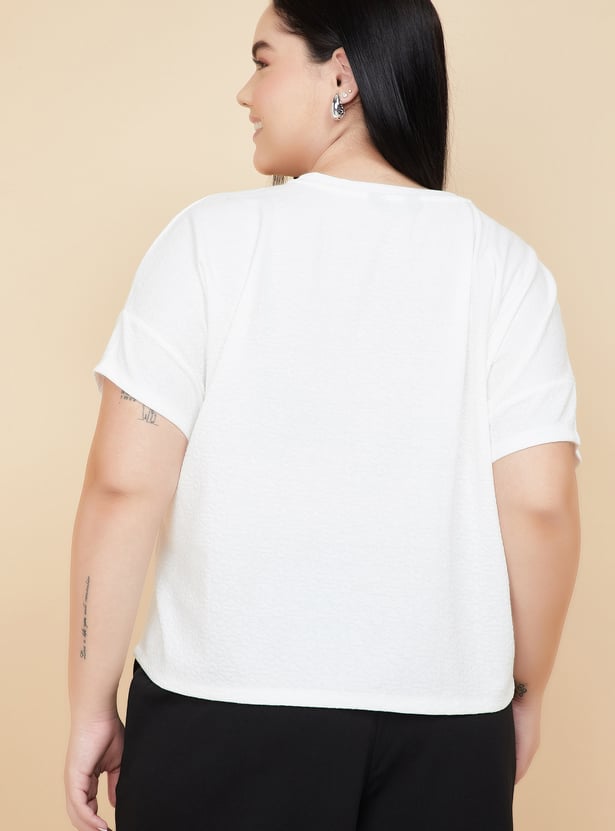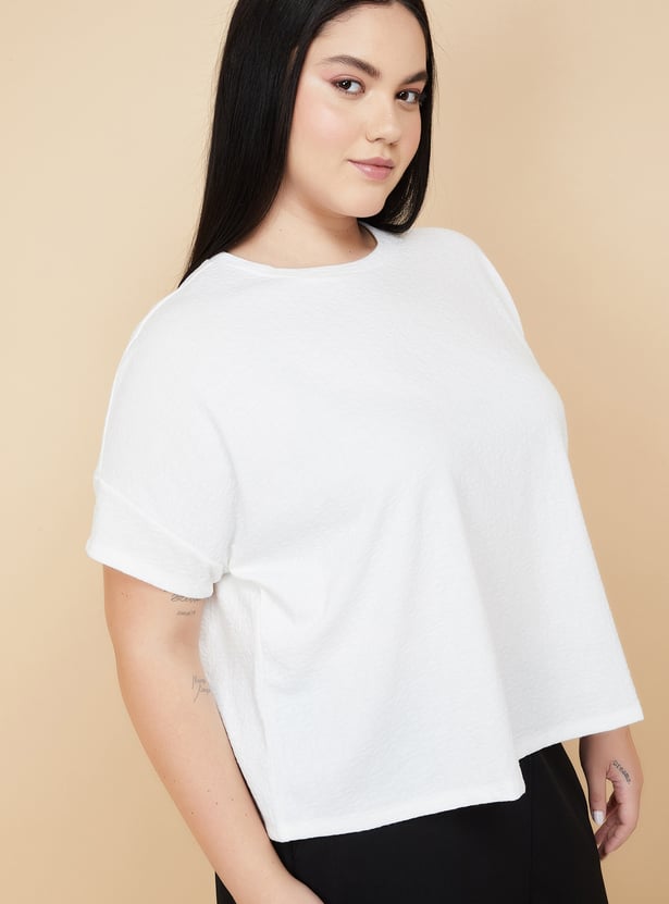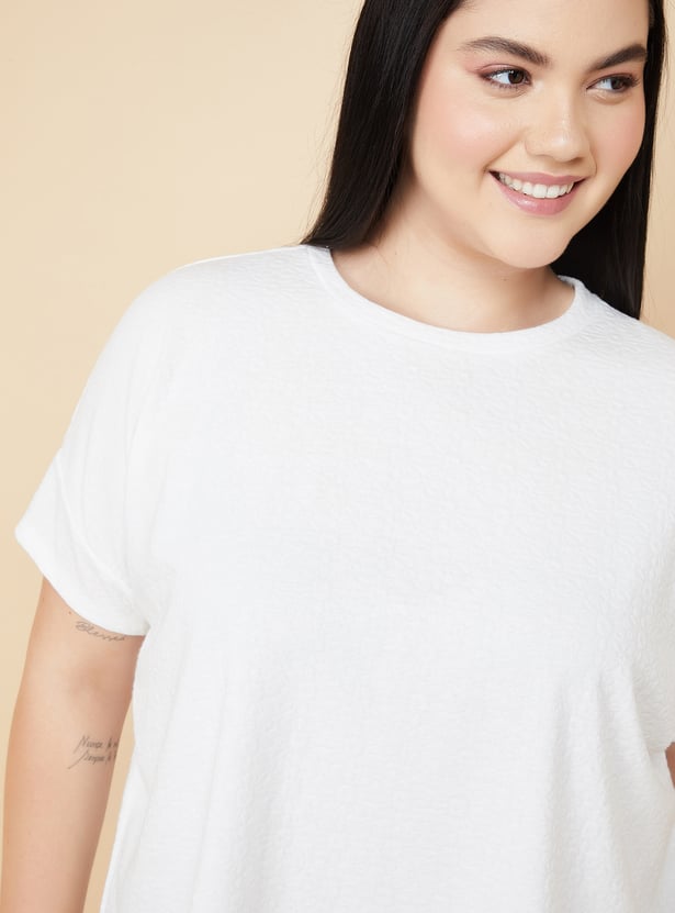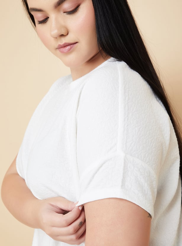 This floral knitted top combines delicate details with everyday comfort. Featuring a round neck and extended half sleeves, it offers a relaxed fit with a touch of feminine elegance—perfect for casual or semi-formal occasions.