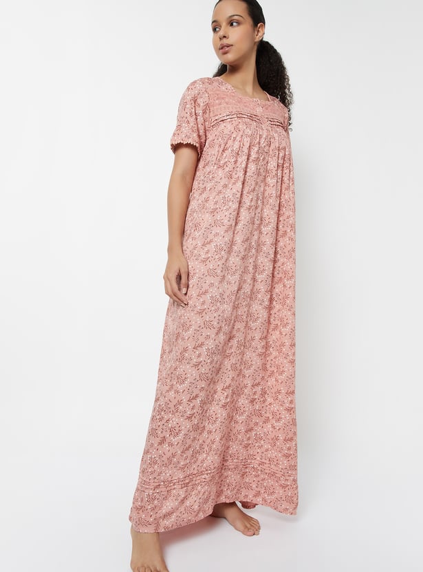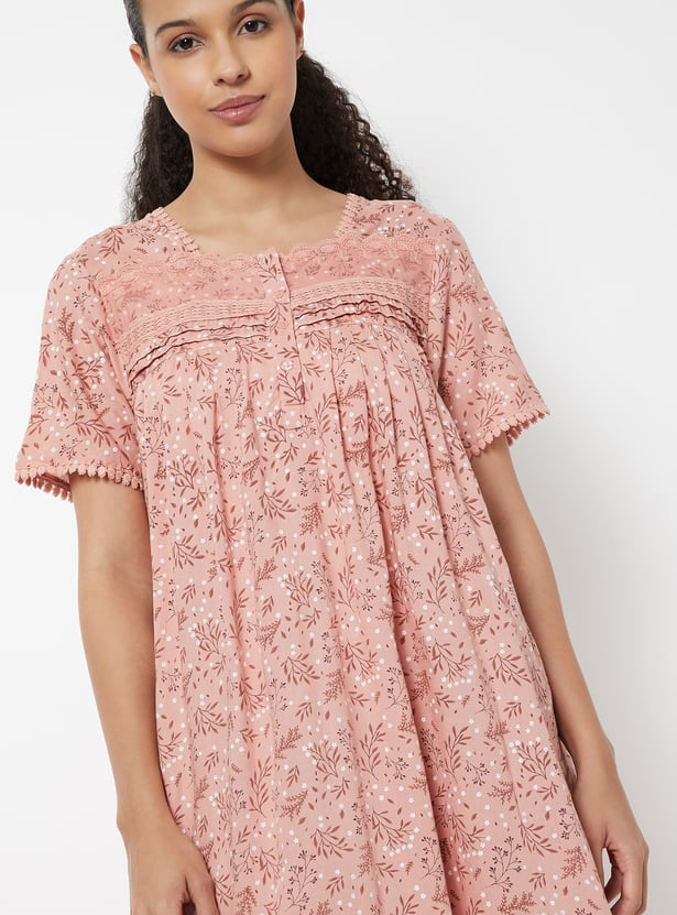 Women Floral Print Night Gown