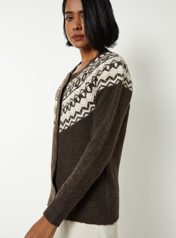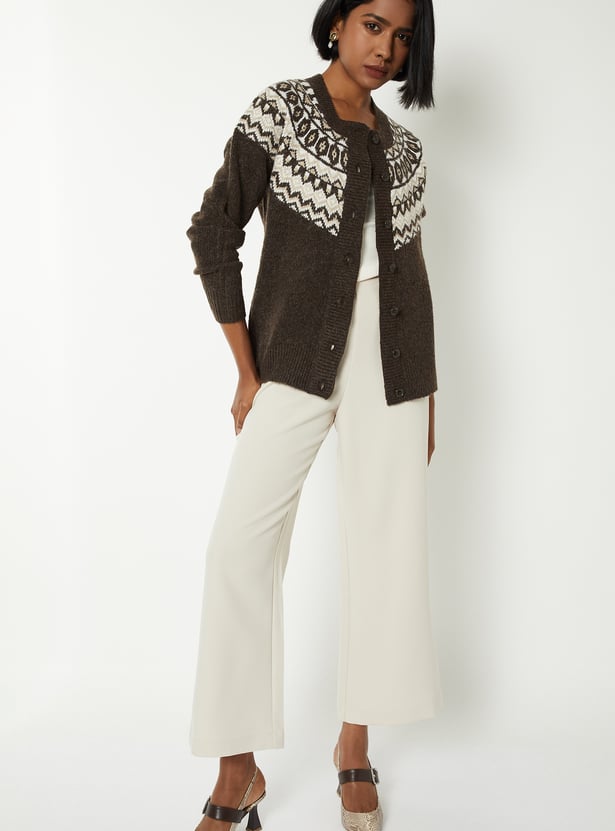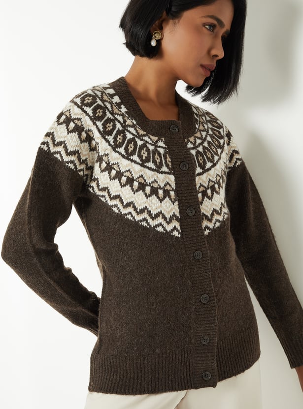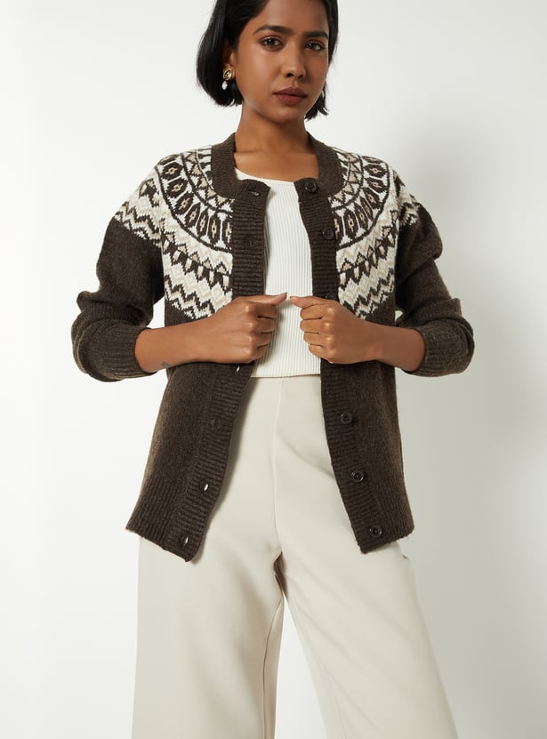 Layer up in style with this knit cardigan, featuring a round neck, button placket, and full sleeves for a cozy and versatile look. Model Size :