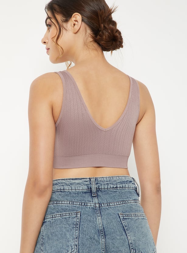 Stay supported in style with this knit sports bra, designed with a flattering V-neck and a slip-on silhouette for easy wear. The elasticated band offers a secure fit, making it perfect for workouts and everyday comfort.