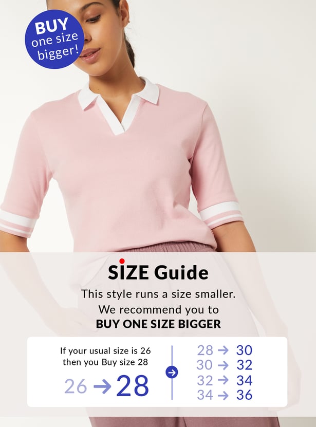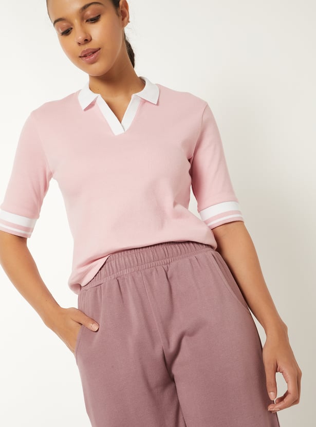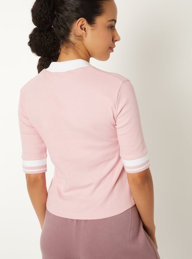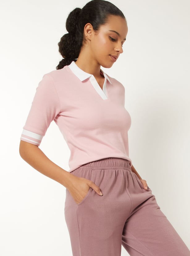 Women Knit Textured Johnny Collar Sports T-shirt