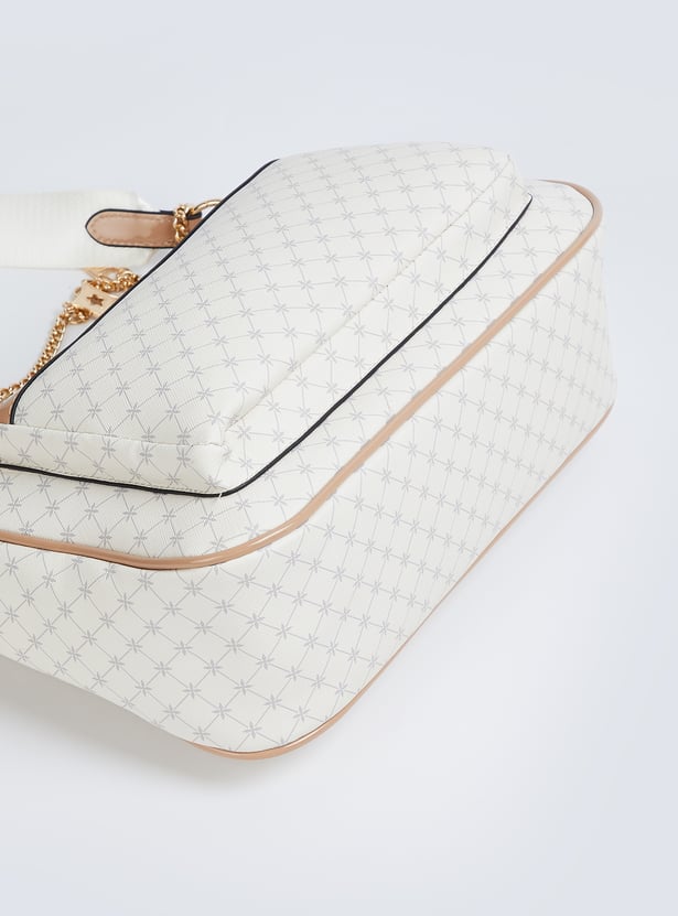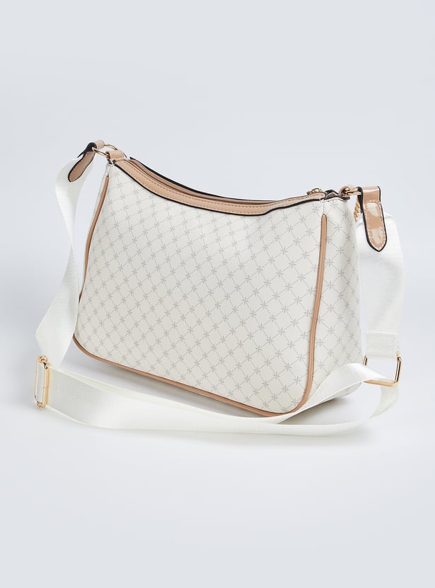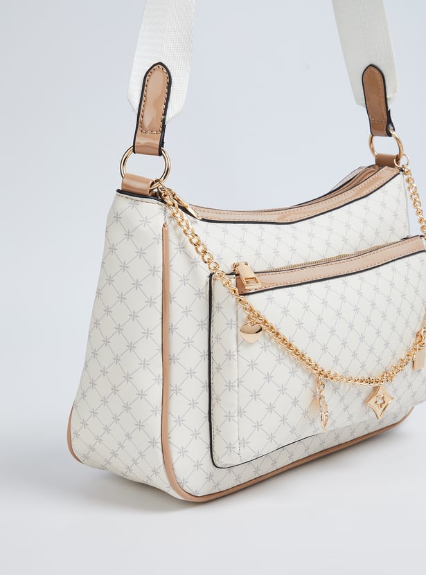 Add a fun, stylish touch to your look with this printed sling bag. Featuring a zip closure, a front zip pocket for easy access, and a chain loop with charms for extra flair, it’s perfect for carrying your essentials in style.