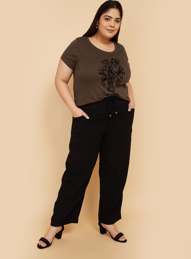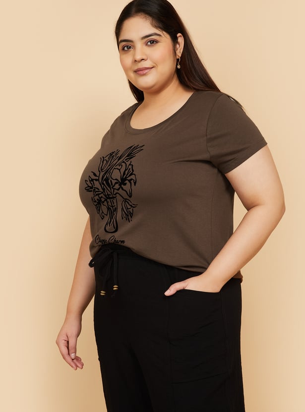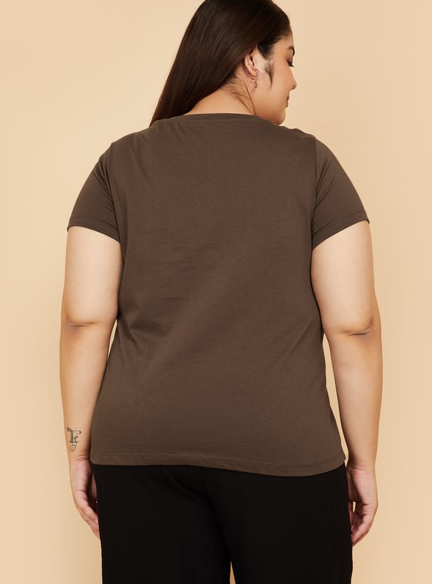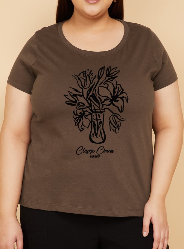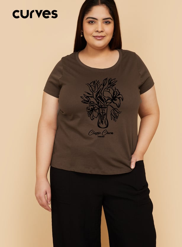 Casual round-neck T-shirt with a printed design and comfortable half sleeves. Ideal for everyday wear with a relaxed fit. Model Size :