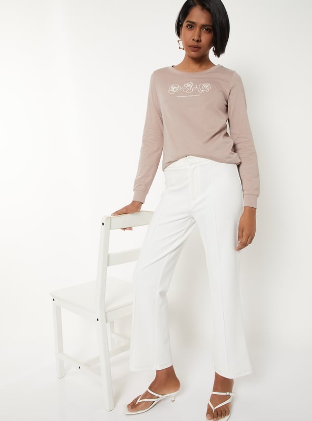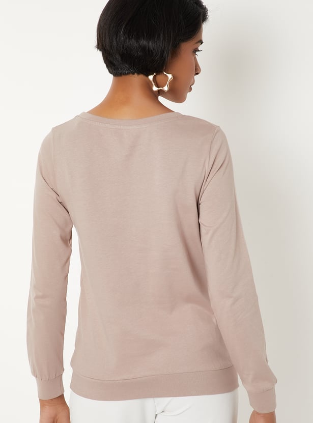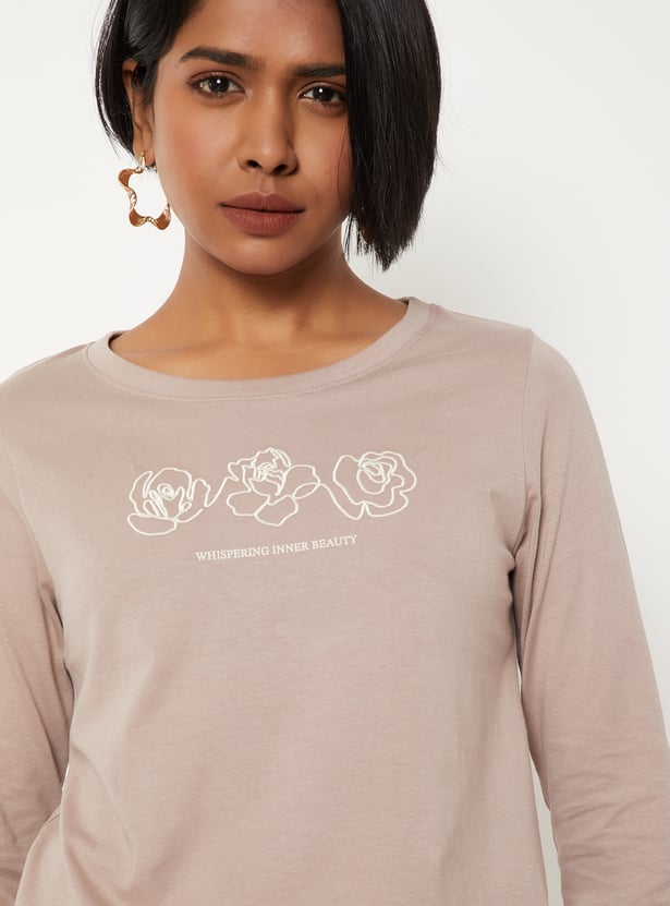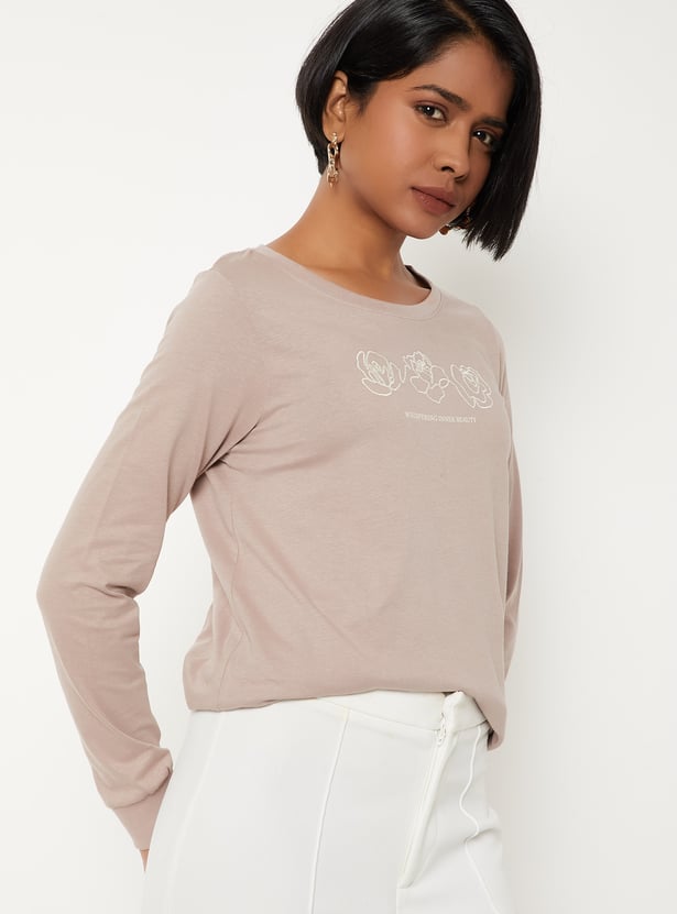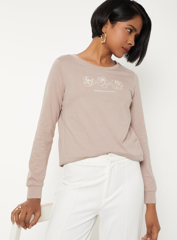Casual and stylish, this printed T-shirt is designed with a round neck and full sleeves. The print adds a playful touch while the longer sleeves make it versatile for layering or cooler days.