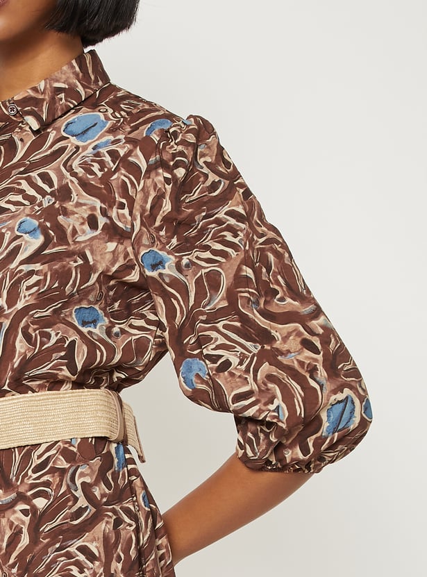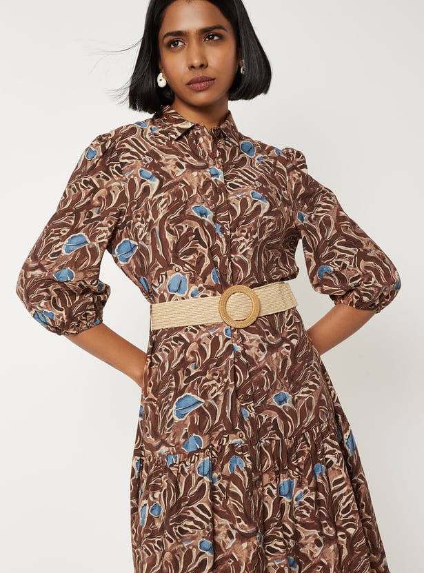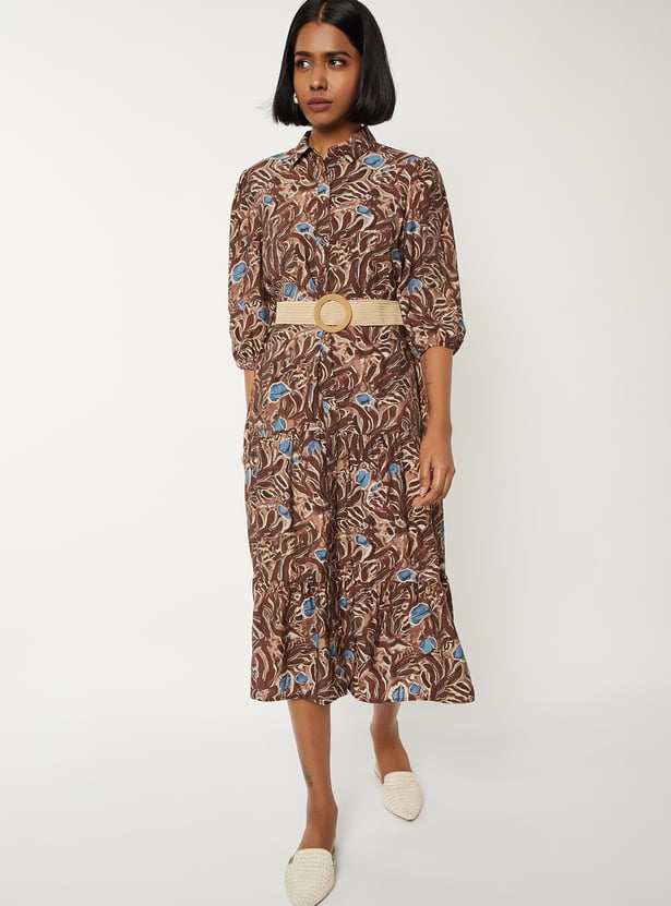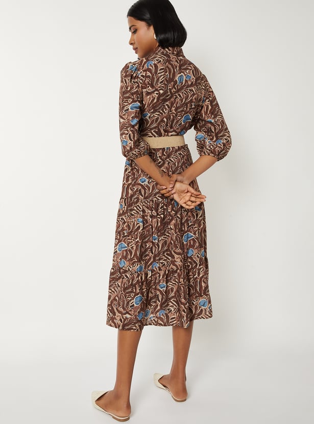 Women Printed Tiered Dress with Belt