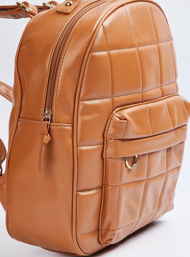 Perfect for weekend adventures, this backpack features a stylish quilted surface. It comes with adjustable straps, a top handle, and a zip-around main compartment with an internal pocket and a front pocket for convenient storage.