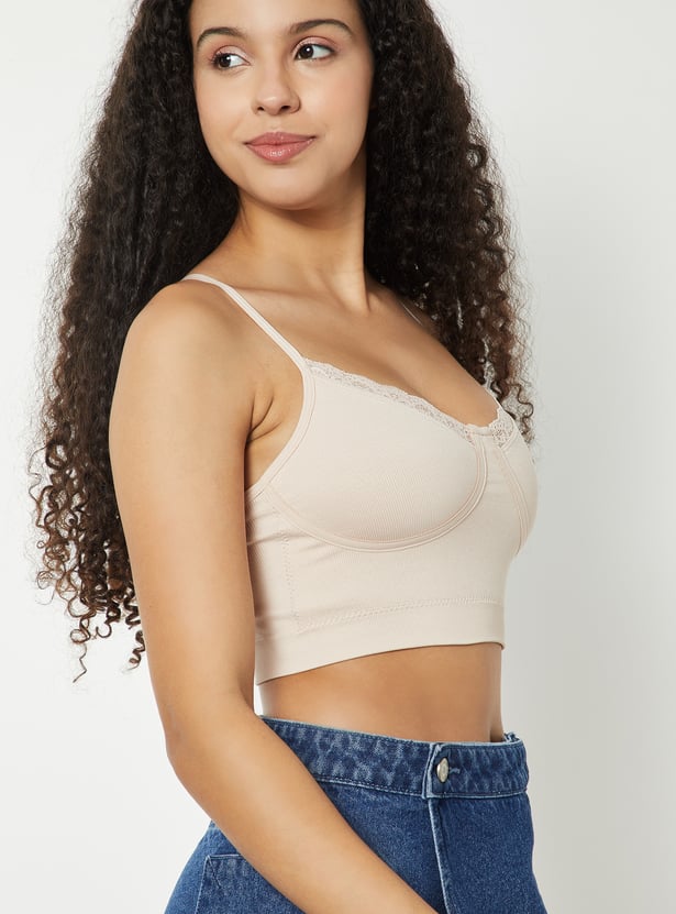 Women Ribbed Lace Inserts Cami Bra