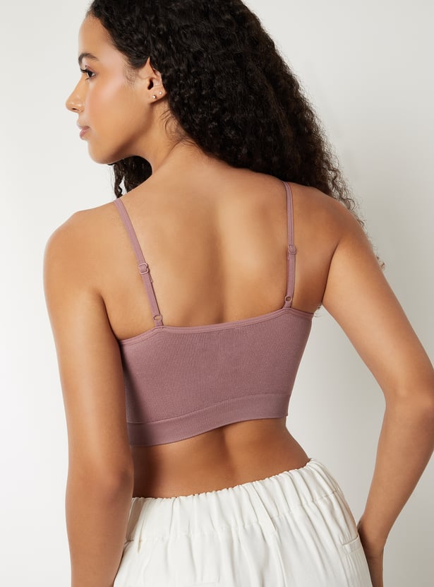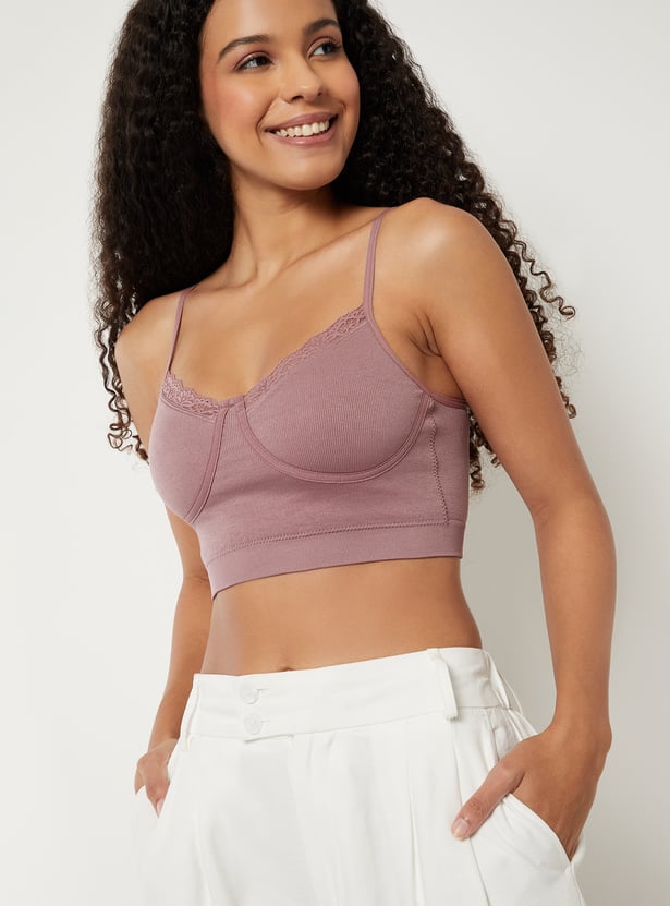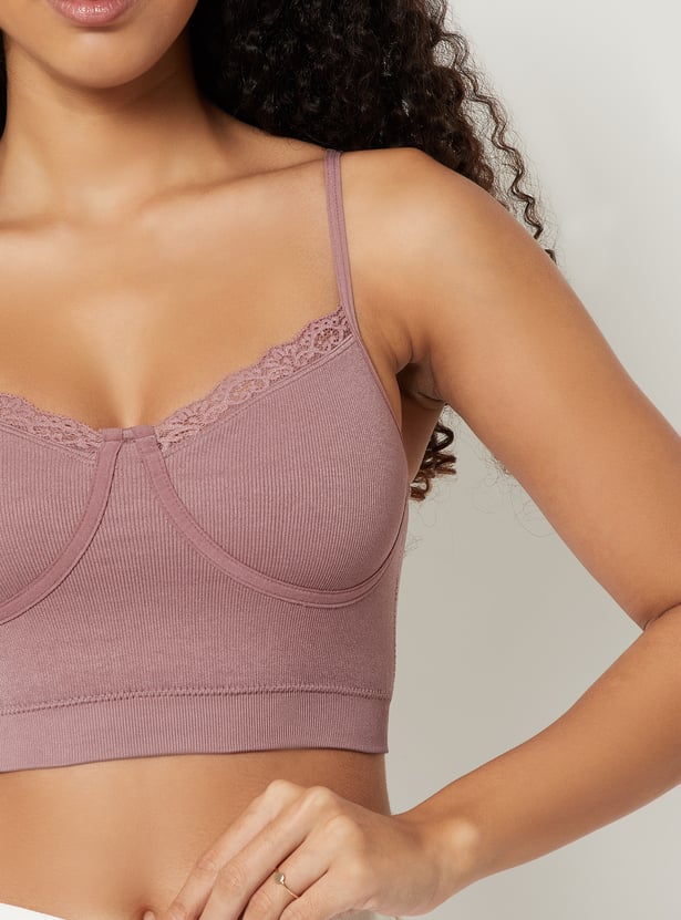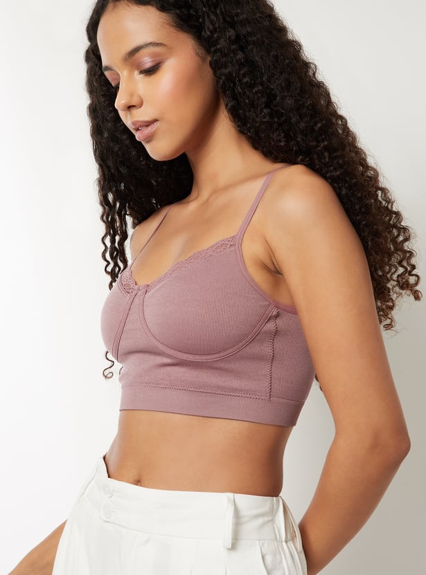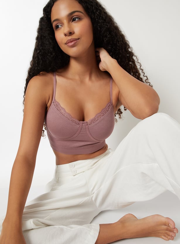 Women Ribbed Lace Inserts Cami Bra
