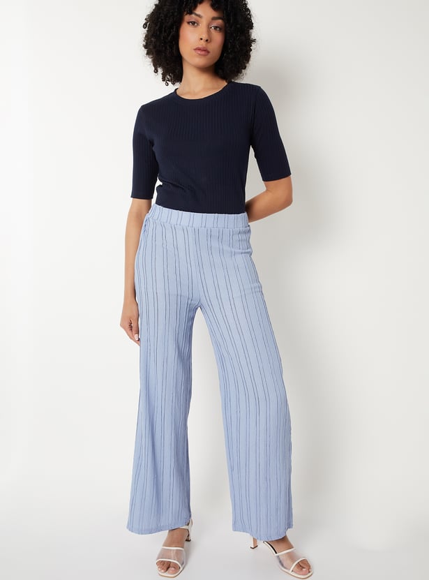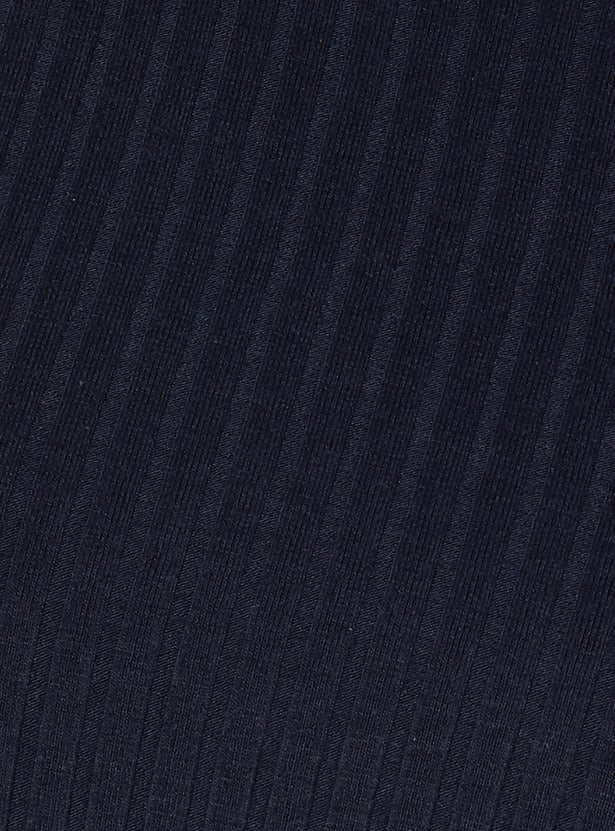 Elevate your casual wardrobe with this ribbed T-shirt, designed with a round neck and half sleeves for that perfect balance of comfort and style. Model Size :