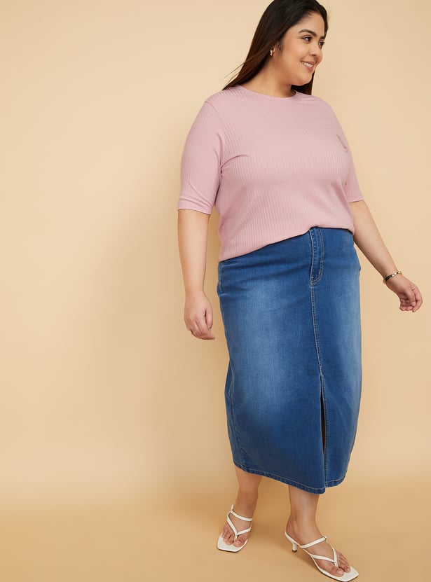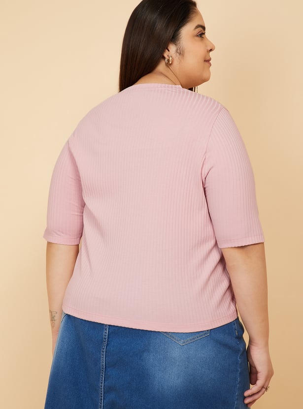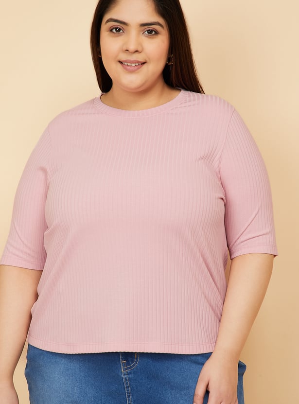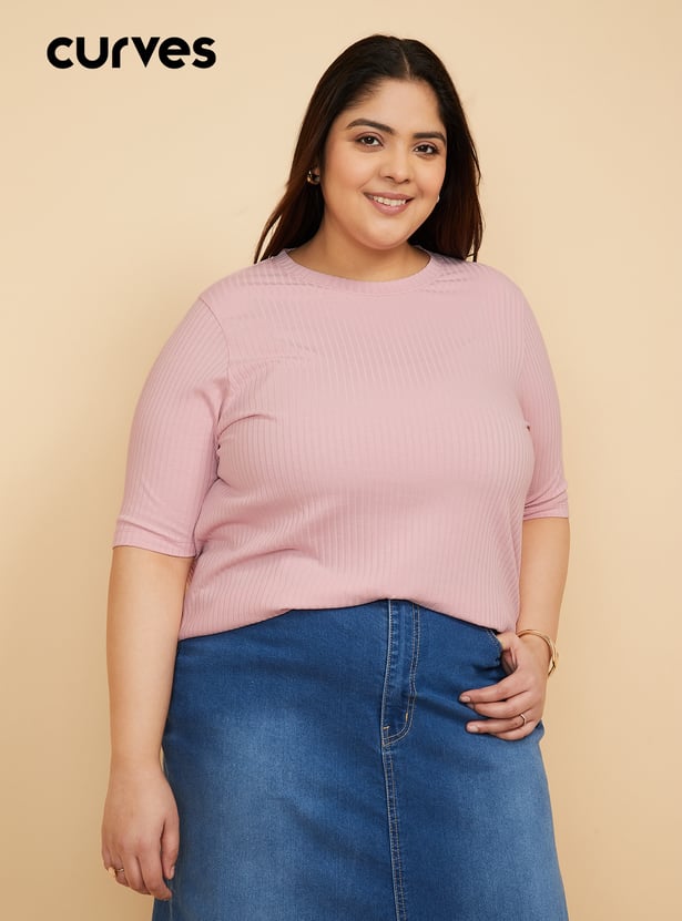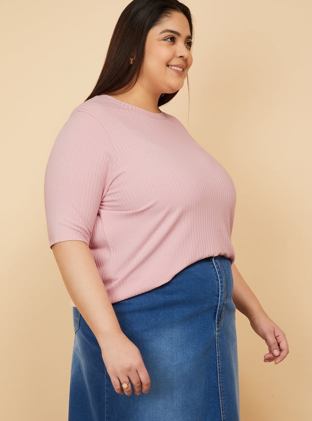 Keep it simple yet stylish with this ribbed T-shirt, featuring a classic round neck and half sleeves. The textured ribbed design adds a modern twist to a timeless silhouette, making it perfect for everyday wear.