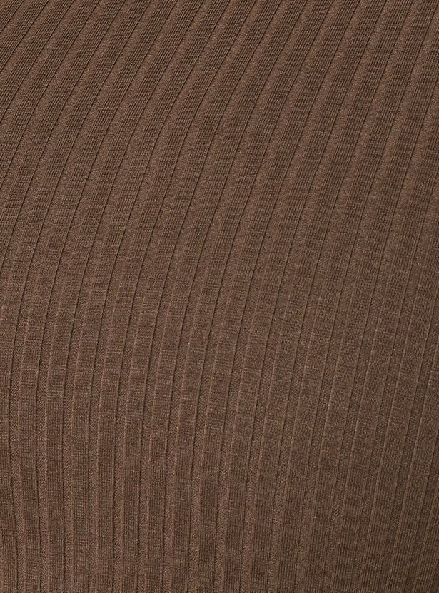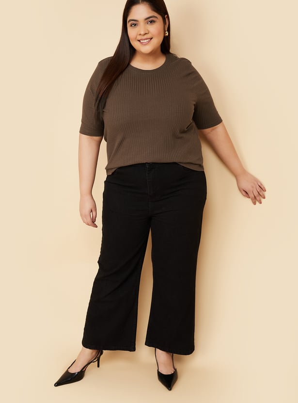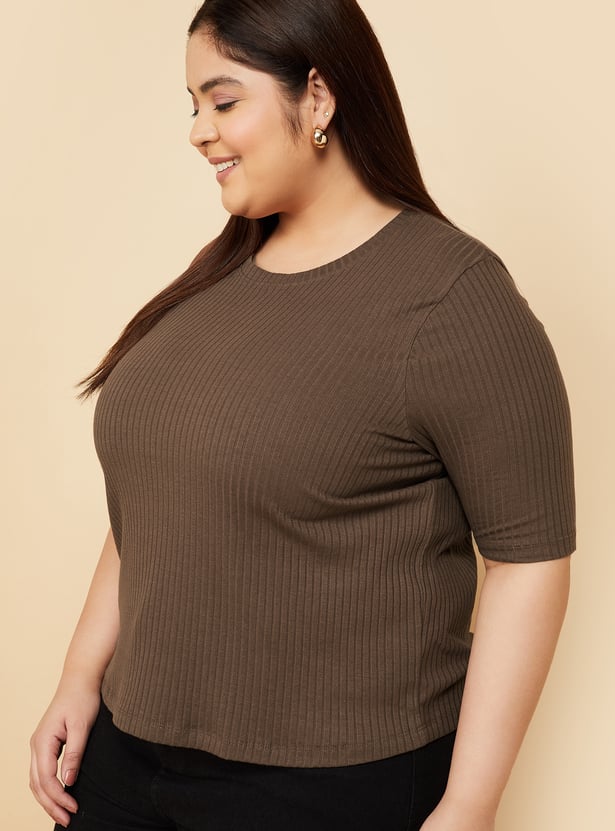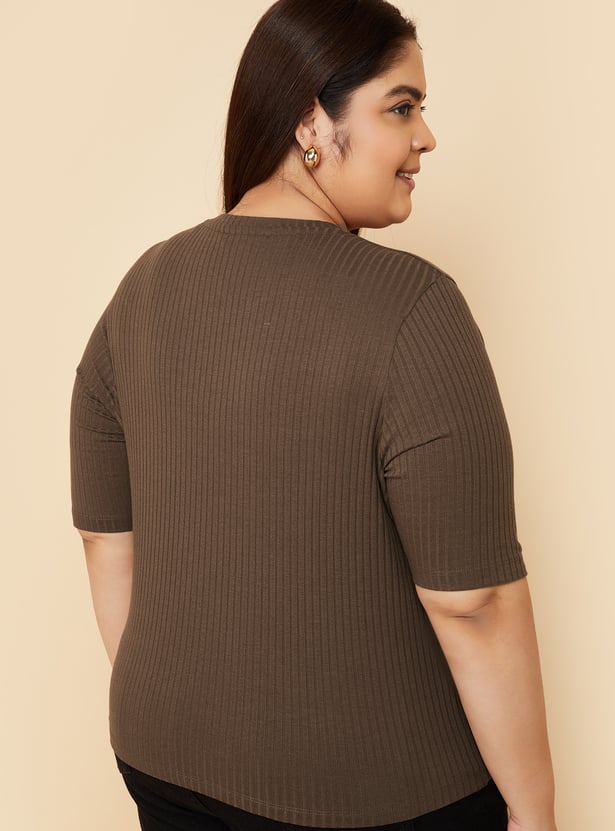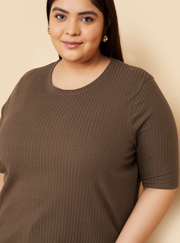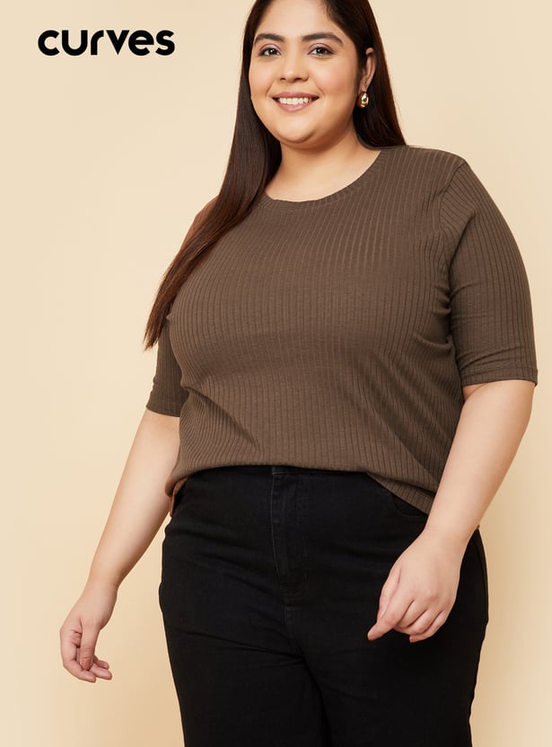 Elevate your casual wardrobe with this ribbed T-shirt, designed with a round neck and half sleeves for that perfect balance of comfort and style. Model Size :