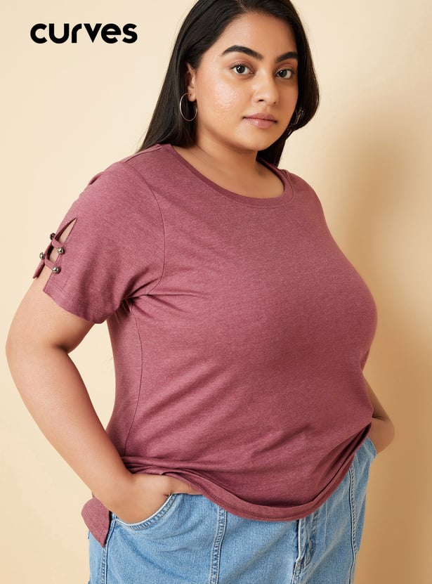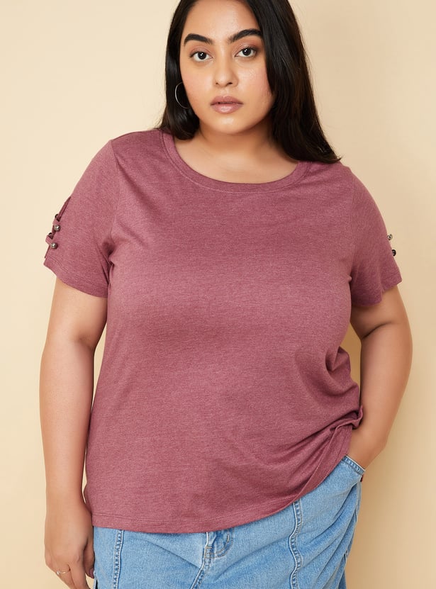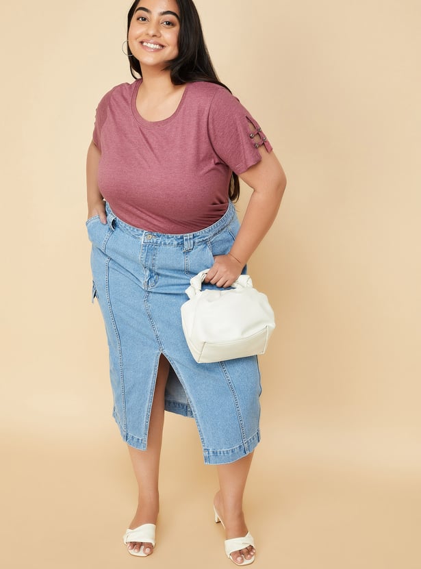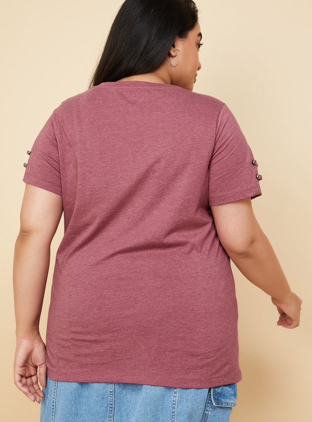 Women Slit Sleeves Top with Button Details