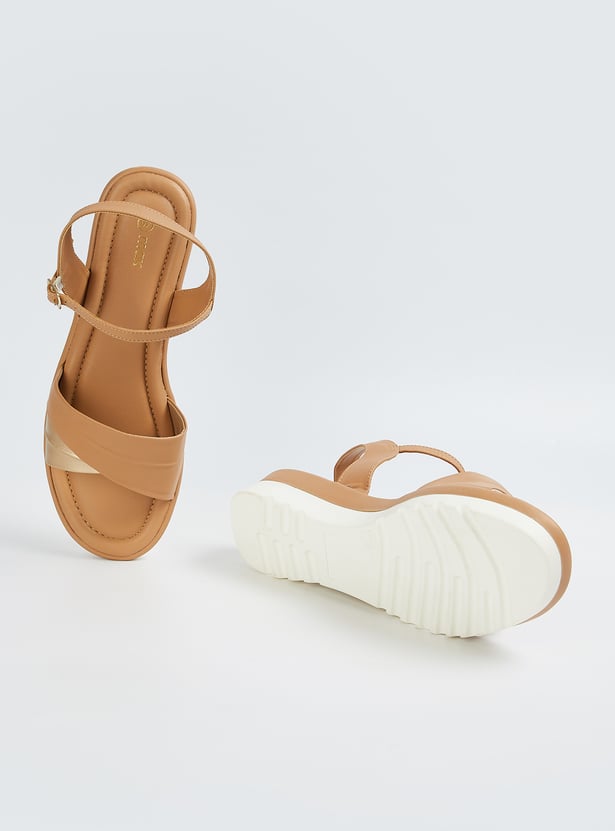 Women Solid Ankle Strap Wedges
