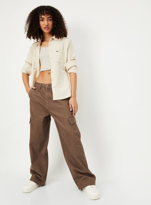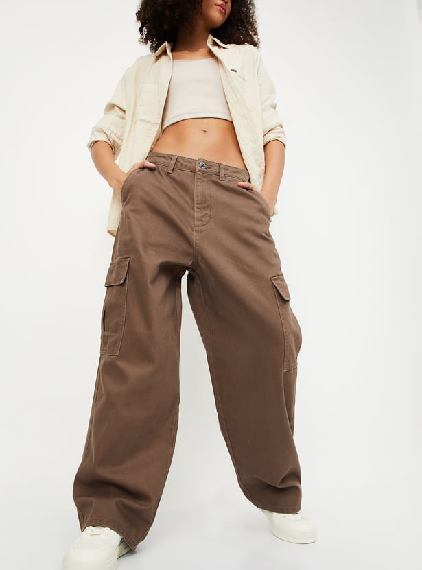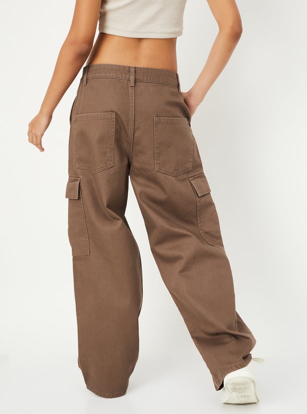 Laid-back and utility-inspired. These jeans feature a button closure, low-rise, belt loops, and multiple pockets for form and function, all in a solid finish.