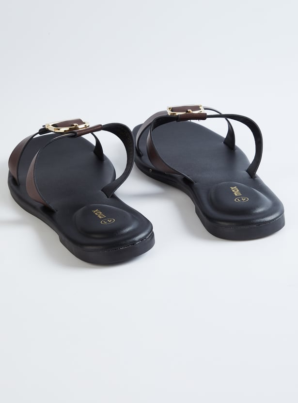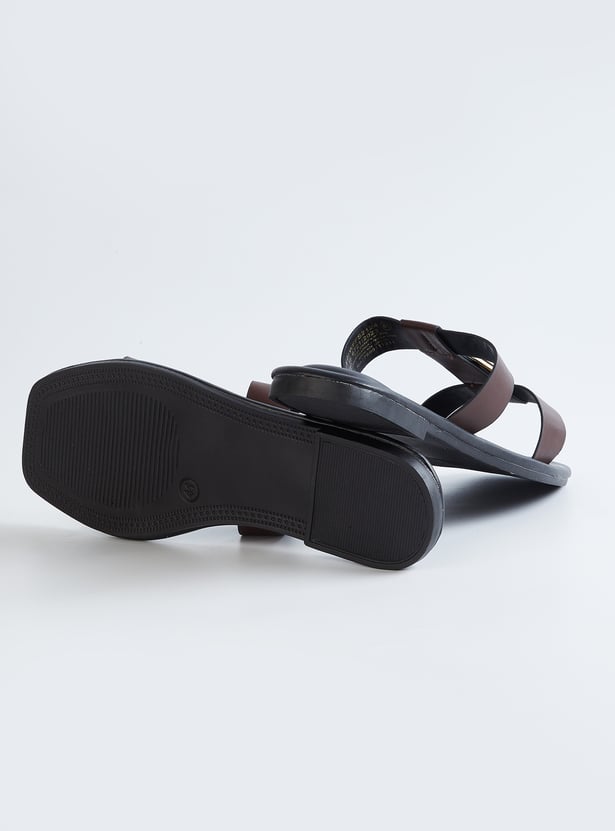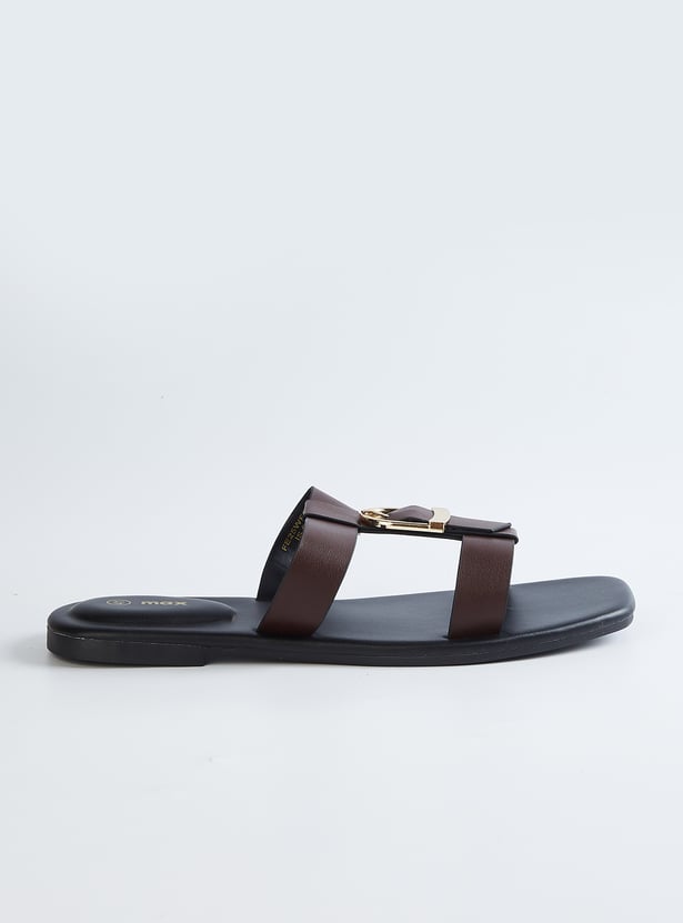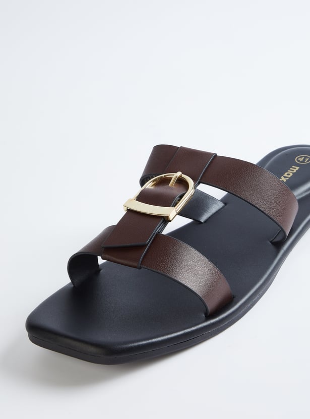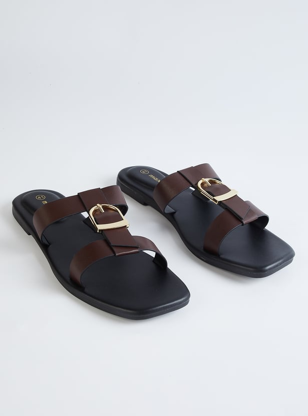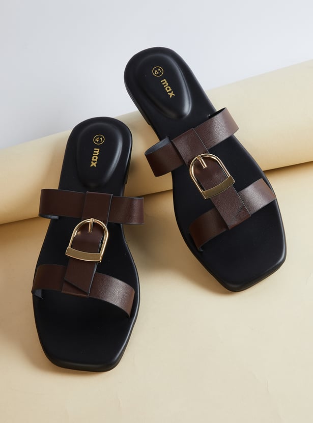 Women Solid Double Strap Sandals with Buckle