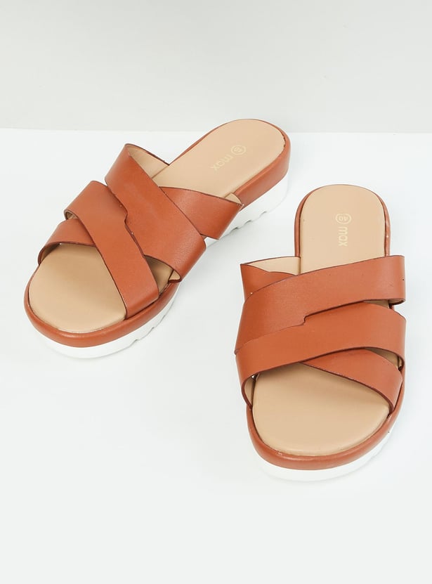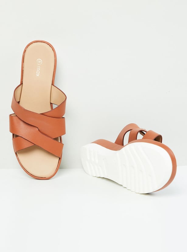 Women Solid Open Toe Flatform Sandals