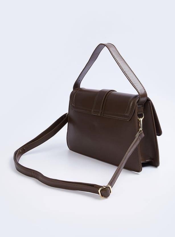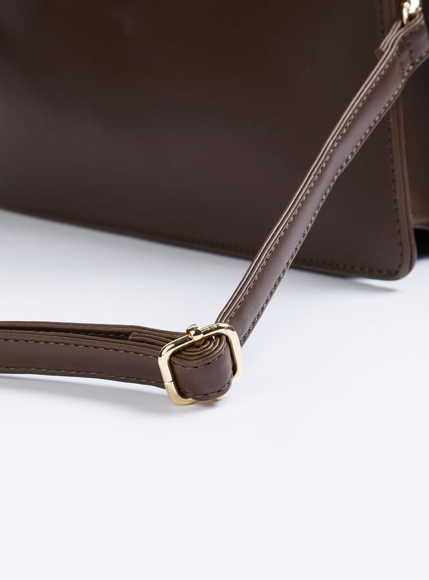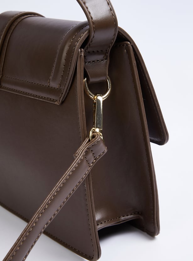 This solid satchel offers a sleek, minimalist design with a secure snap button closure and an adjustable sling strap for a customizable fit. Its compact structure makes it perfect for carrying your essentials in style, whether for a casual day out or a more polished look.
