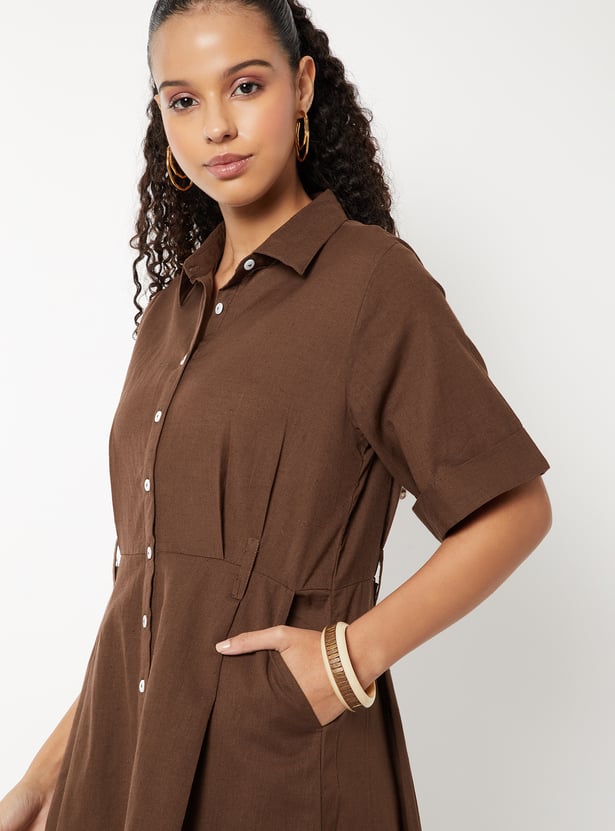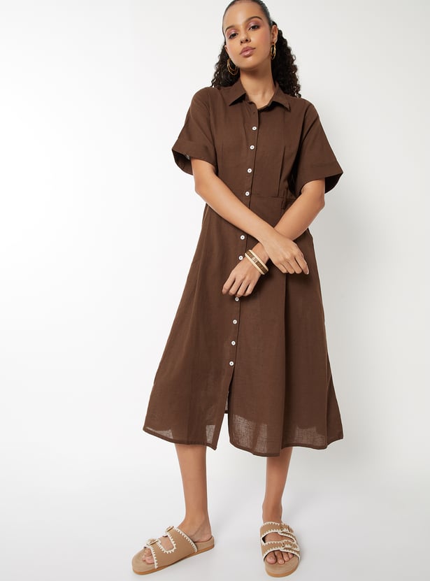 Women Solid Shirt Midi Dress
