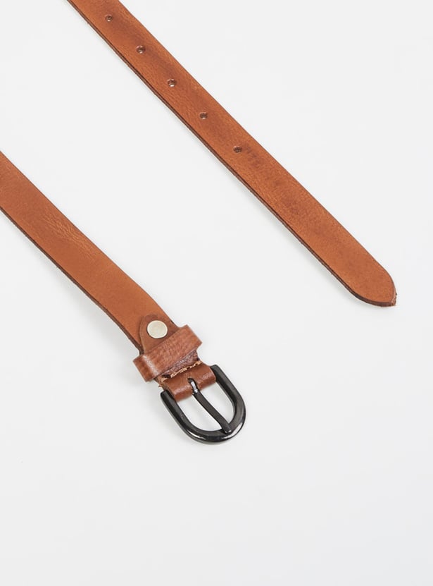 Enhance your look with this solid belt which comes with easy buckle closure. Accessorize your look with this belt for a debonair appeal.