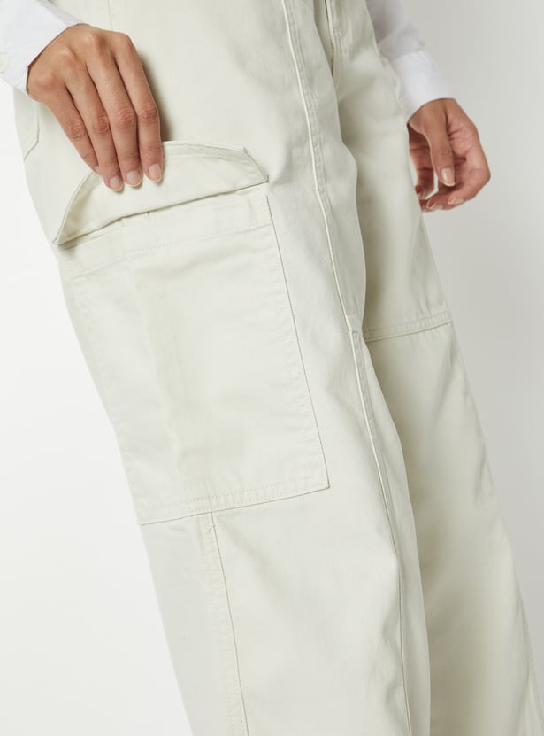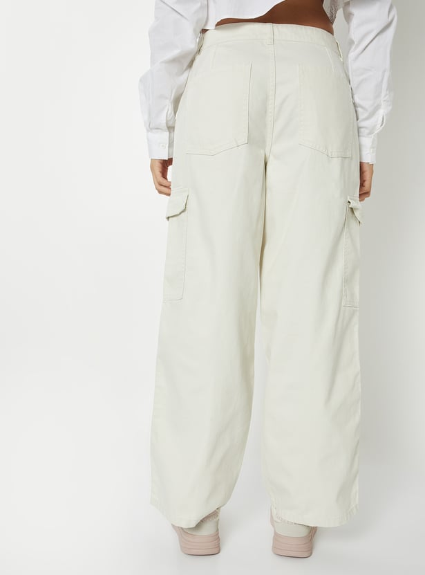 Women Solid Wide Leg High-Rise Cargo Jeans