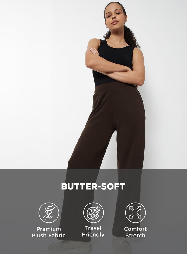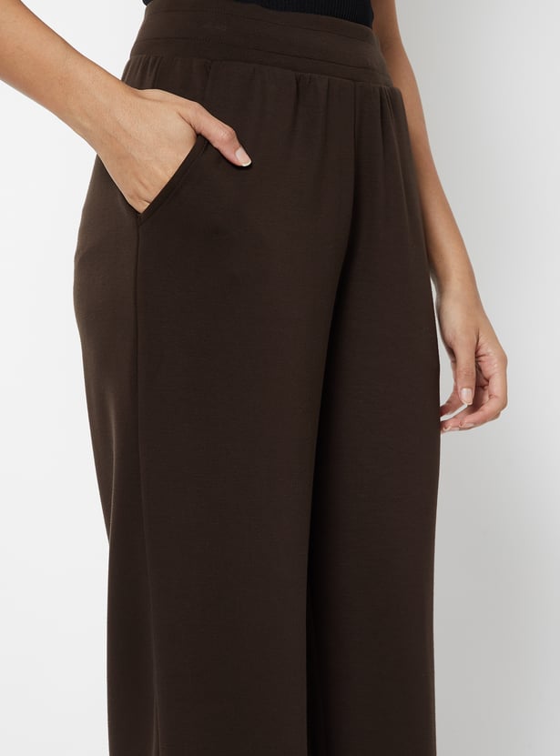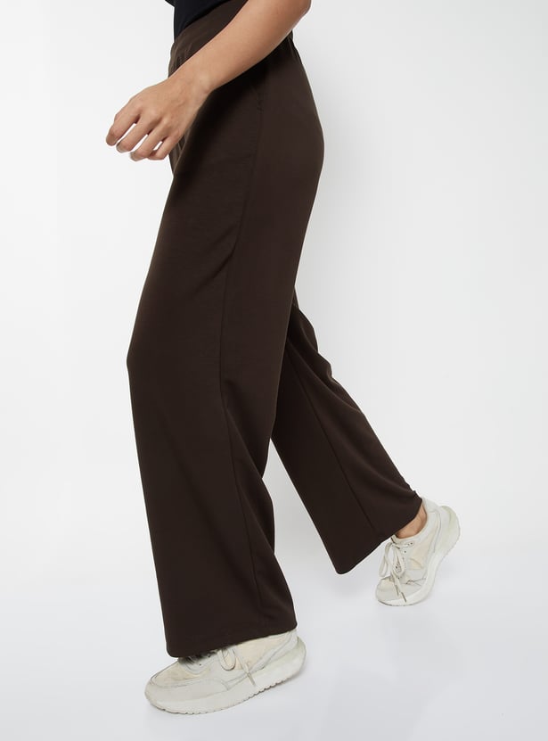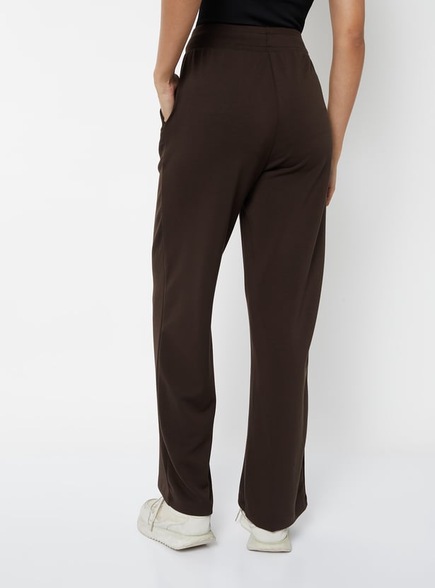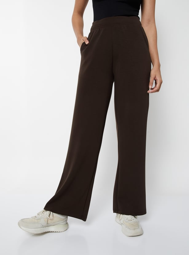 Step up your athleisure game with these solid wide-leg sports track pants, featuring convenient side pockets for an easy, on-the-go fit. Model Size :
