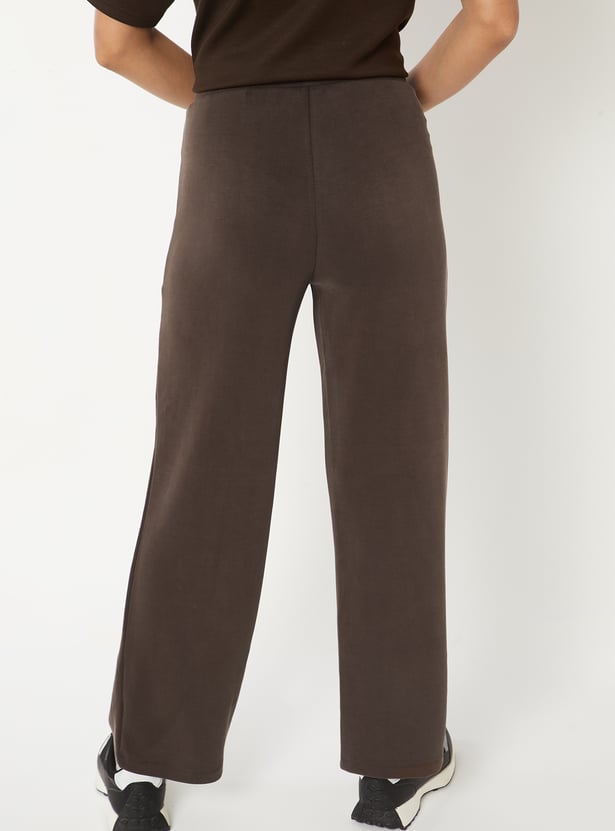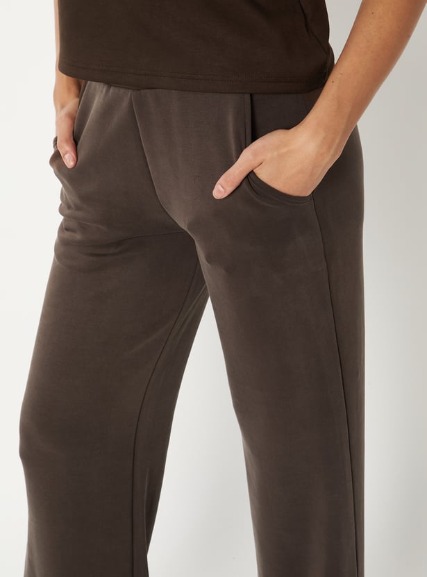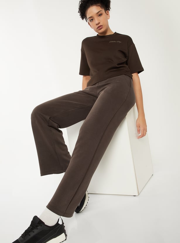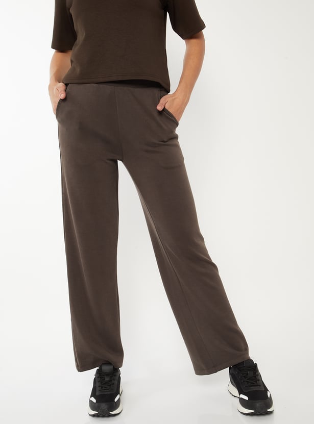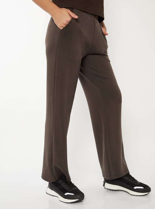 Women Solid Wide Leg Sports Track Pants