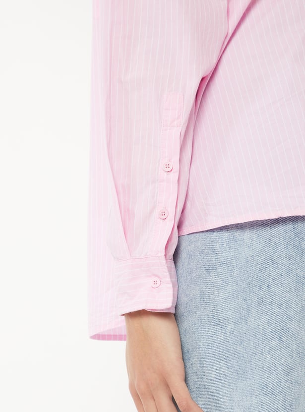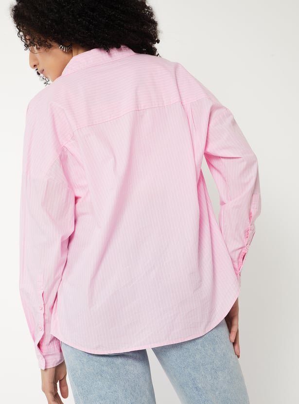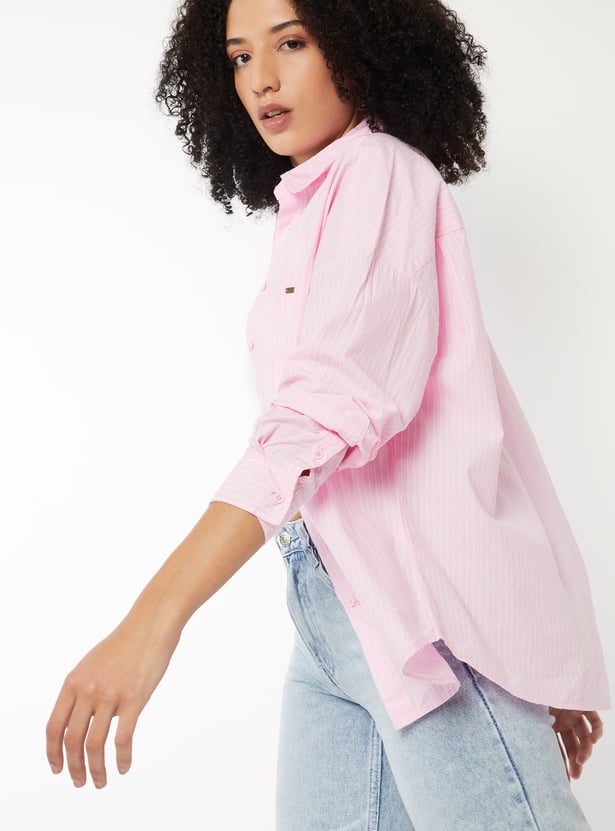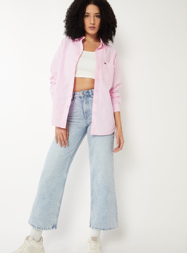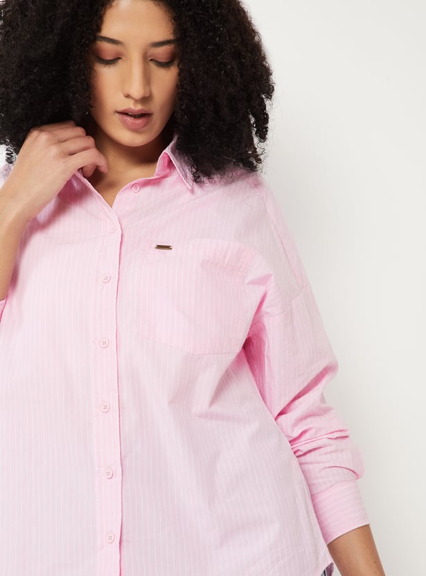This striped regular fit shirt features a button-down front, full cuffed sleeves, and a classic chest pocket for a refined yet effortless look. Perfectly tailored for everyday elegance with a hint of laid-back charm. Model Size :