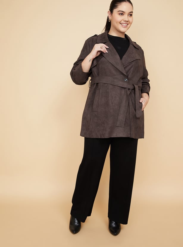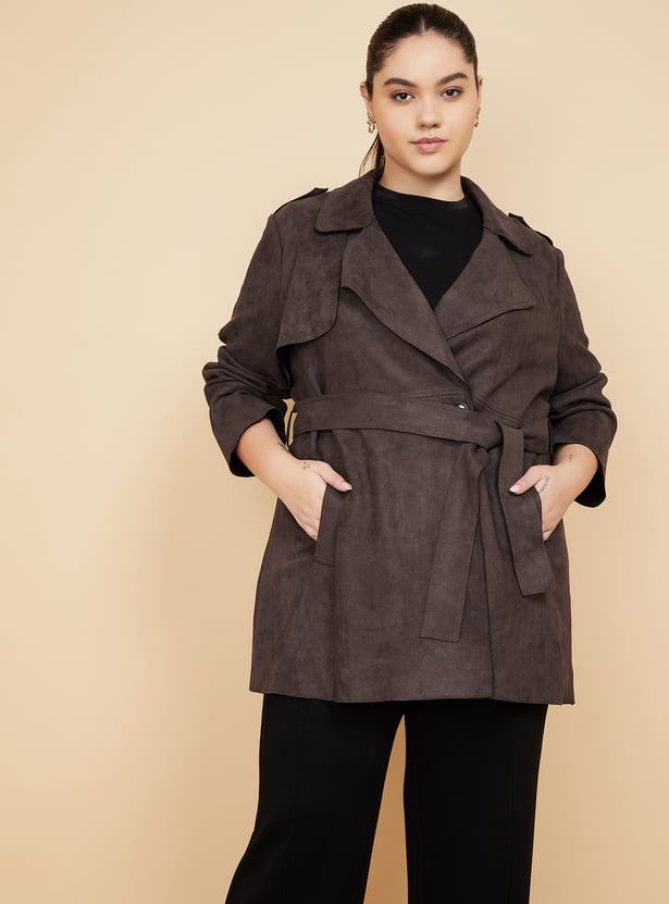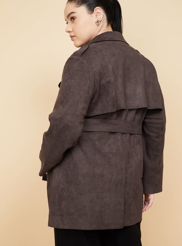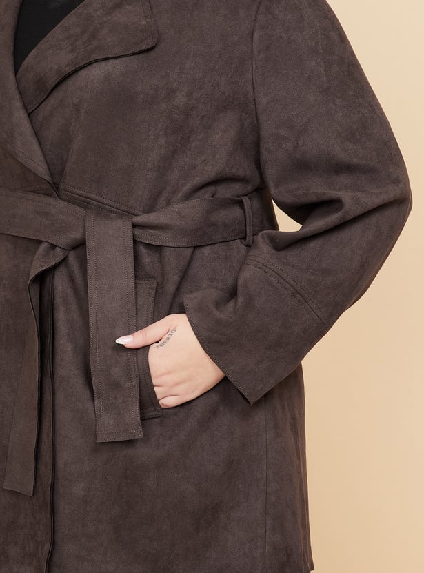 Women Suede Longline Overcoat