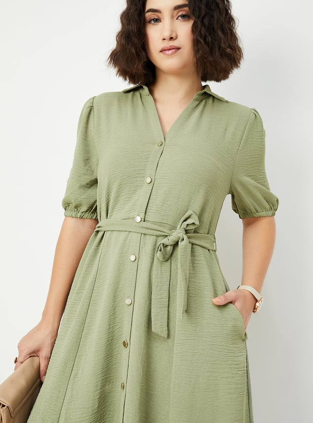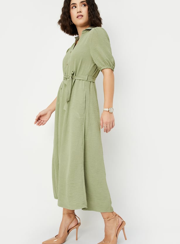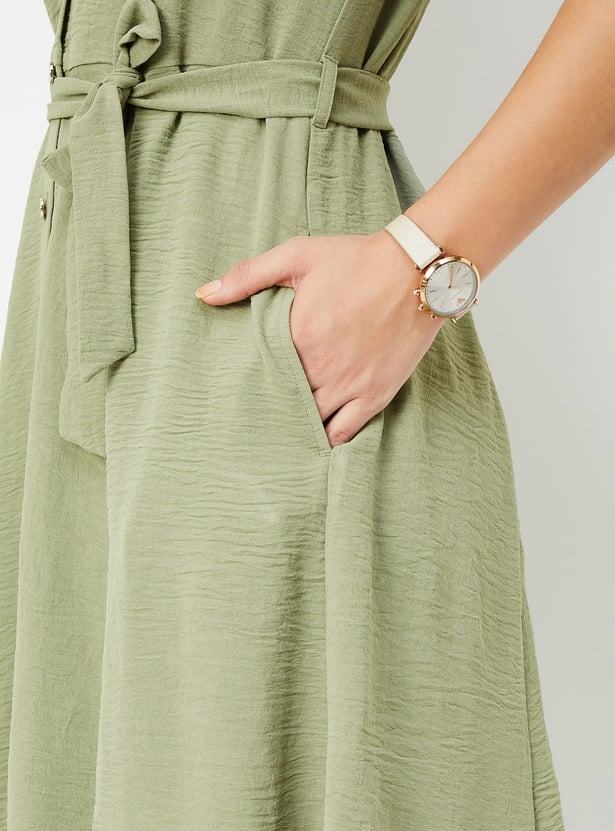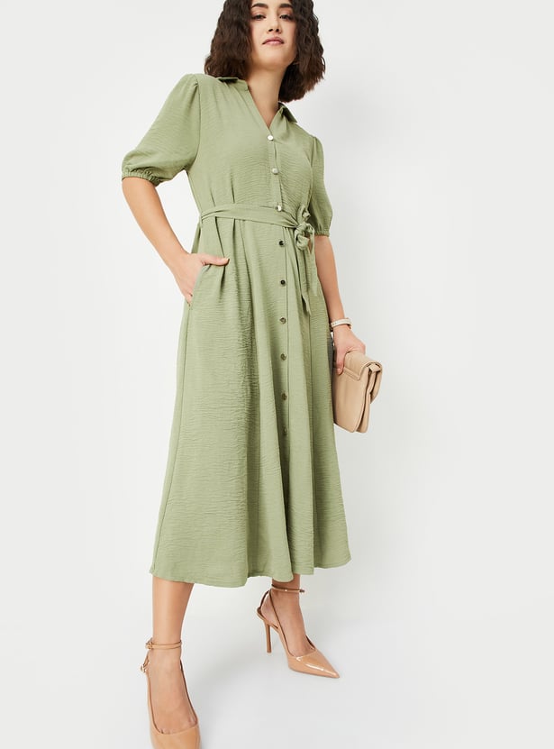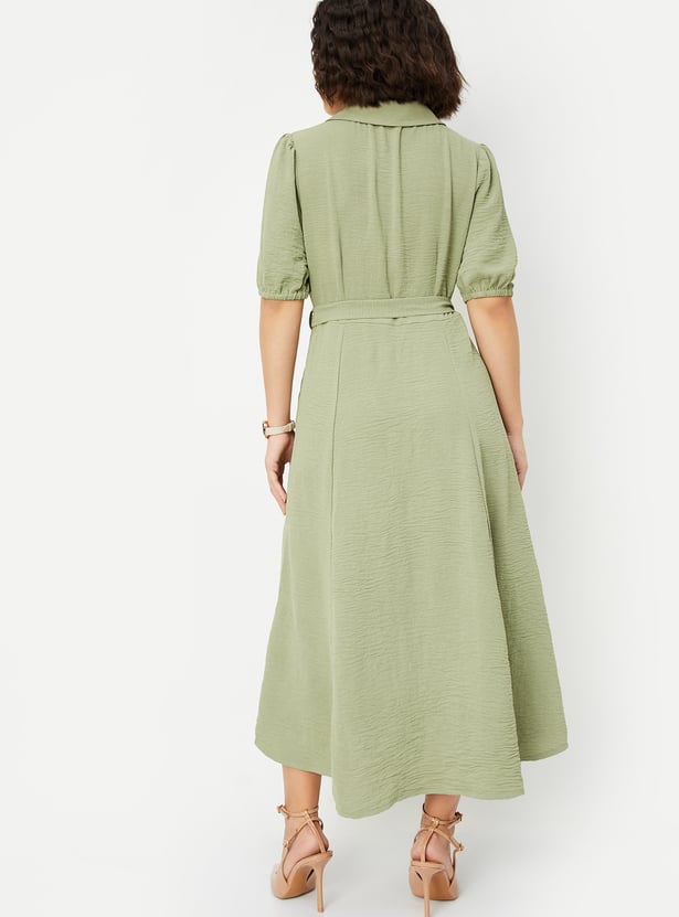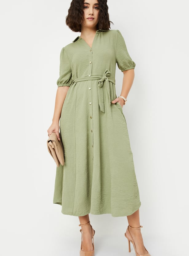 Women Textured Belted Midi Dress